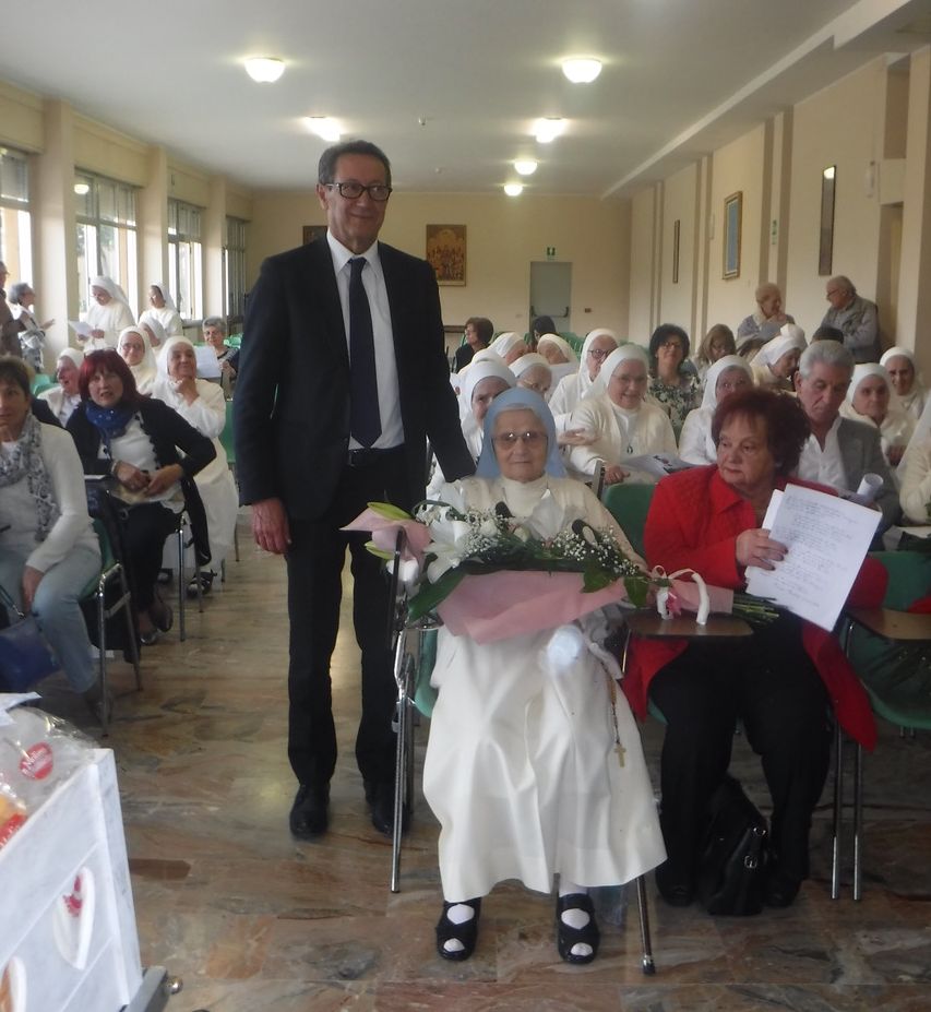 SAN BENEDETTO DEL TRONTO – E’ stato il sindaco Pasqualino Piunti a portare, con il tradizionale mazzo di fiori, il saluto e l’abbraccio della città a suor Maria Elena Citeroni che, nel pomeriggio del 16 maggio, ha festeggiato con le consorelle Concezioniste, ma anche con tante persone a lei affezionate, il traguardo dei 100 anni.