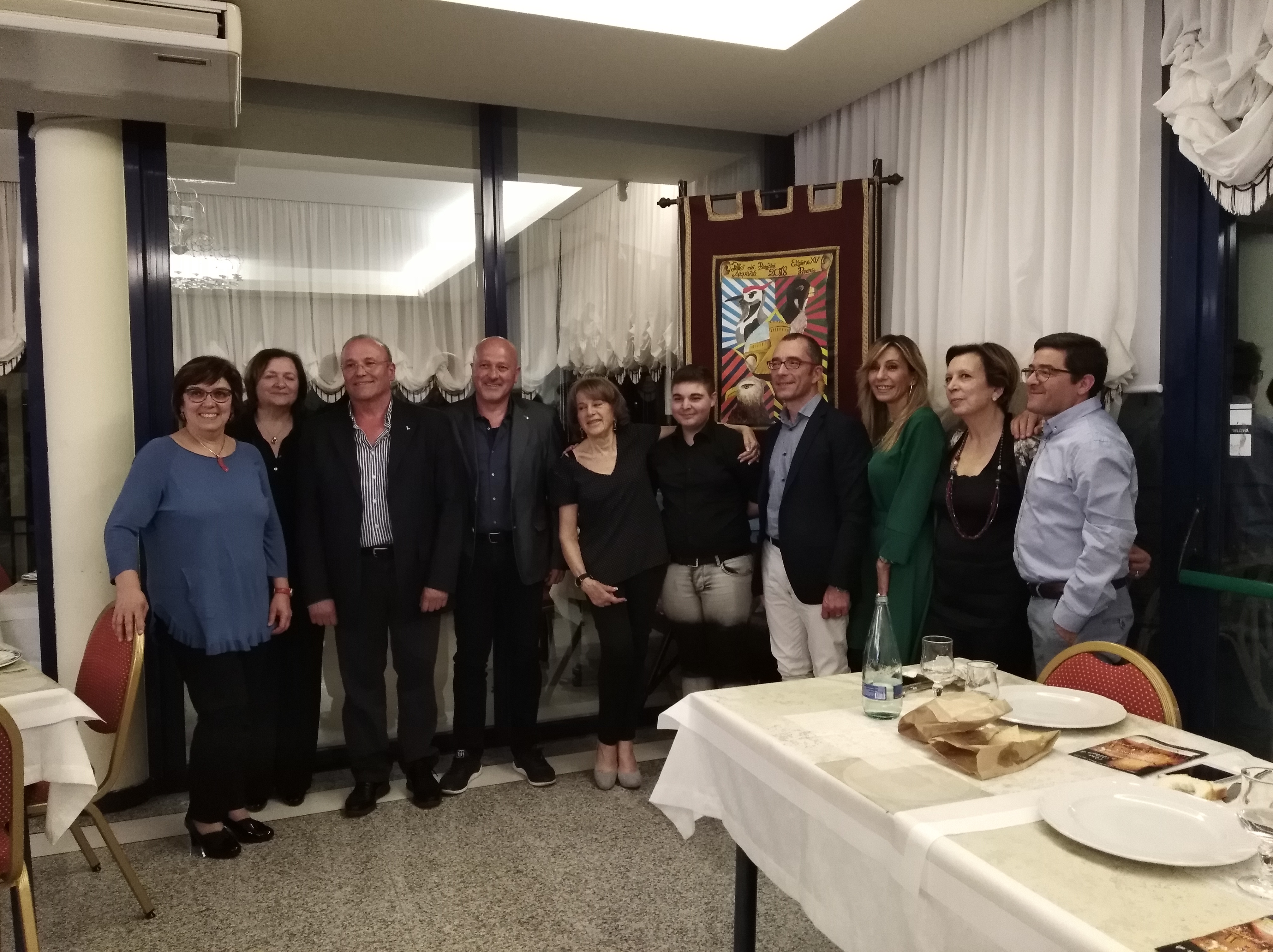 GROTTAMMARE – Presso il ristorante Delfino Blu di Grottammare l’Associazione Palio del Duca di Acquaviva Picena ha presentato il Drappo che verrà conteso sabato 26 maggio ad Acquaviva in occasione del Palio dei Bambini. Presente all’evento il ragazzo autore del disegno Maurizio Crescenzi di Monsampolo. Presente anche la sua insegnante prof.ssa Agresti. Oltre ai membri, ai soci e al presidente dell’Associazione Palio del Duca Cav. Nello Gaetani, erano presenti il sindaco di Acquaviva Rosetti, l’assessore alla cultura Riga, l’assessore e insegnante Massicci e i rappresentanti dei comuni di Monteprandone e Monsampolo assessore Morelli e assessore Schiavi. Invitato anche il presidente della Banca del Piceno Mattioli. Ad aprire la serata è stato il presidente cav. Gaetani che ha detto: “Grazie di essere intervenuti. Ringrazio il sindaco Rosetti, l’assessore Riga, l’assessore del comune di Monteprandone Morelli e l’assessore del comune di Monsampolo Schiavi, l’autore del Drappo Maurizio Crescenzi, il presidente della BCC Mattioli, la prof.ssa Agresti, l’insegnante Rita Bartolomei vera “colonna” del Palio dei Bambini e tutti voi intervenuti. Io vi do appuntamento sabato 26 maggio e spero un giorno di realizzare il mio sogno cioè quello di creare il Palio dei Comuni, in modo da rafforzare ancora di più l’Unione dei nostri comuni. Vi auguro buona serata”. Il sindaco Rosetti ha invece detto: “Grazie a tutti della vostra presenza. Mi complimento con Maurizio per il bellissimo disegno e spero che sia Acquaviva ad aggiudicarsi il Drappo quest’anno. Io conosco bene quanto lavoro c’è dietro la realizzazione del Palio dei Bambini e sono fiero dell’impegno che il presidente, i membri e i soci dell’associazione applicano nel loro lavoro”. L’assessore Morelli di Monteprandone ha detto: “Sono felice di essere presente a questa serata. Anche secondo me il disegno è molto bello. Sono contenta di vedere i ragazzi gareggiare giocando e divertendosi. Spero di riuscire a venire sabato ad Acquaviva.” L’assessore Schiavi di Monsampolo ha detto: “ Con questa manifestazione si rafforza l’Unione dei Comuni. Tra i vari territori spesso si instaura un’integrazione e una complicità di collaborazione che spesso non viene considerata, il Palio dei Bambini è una di quelle manifestazioni che consolidano le realtà locali. Le nostre scuole perché piccole, vengono a volte considerate anche di minore qualità, non è affatto vero, anzi i nostri ragazzi e gli insegnanti sono di altissimo livello di preparazione”. L’assessore e insegnante Massicci ha detto: “ Mi complimento anche io con Maurizio per il bellissimo disegno e faccio tanti in bocca al lupo ai ragazzi che si sfideranno sabato nei giochi storici”. Il presidente della banca del Piceno Mattioli ha invece detto: “Il contributo della Banca è certamente importante, ma rispetto a tutto il lavoro che l’Associazione Palio del Duca sostiene alla realizzazione del Palio dei Bambini è sicuramente meno impegnativo. È bello sostenere le manifestazioni culturali, storiche e folkloristiche dei nostri territori quindi la Banca del Piceno sarà sempre vicina alle associazioni. È bello e importante sostenere le proprie realtà, io ricordo ancora quando con Nello e altri amici ci occupavamo anni fa del Mercatino di Acquaviva, ho dei ricordi indimenticabili e non scorderò mai il contatto con le persone. Vi auguro un buon proseguimento di serata”.