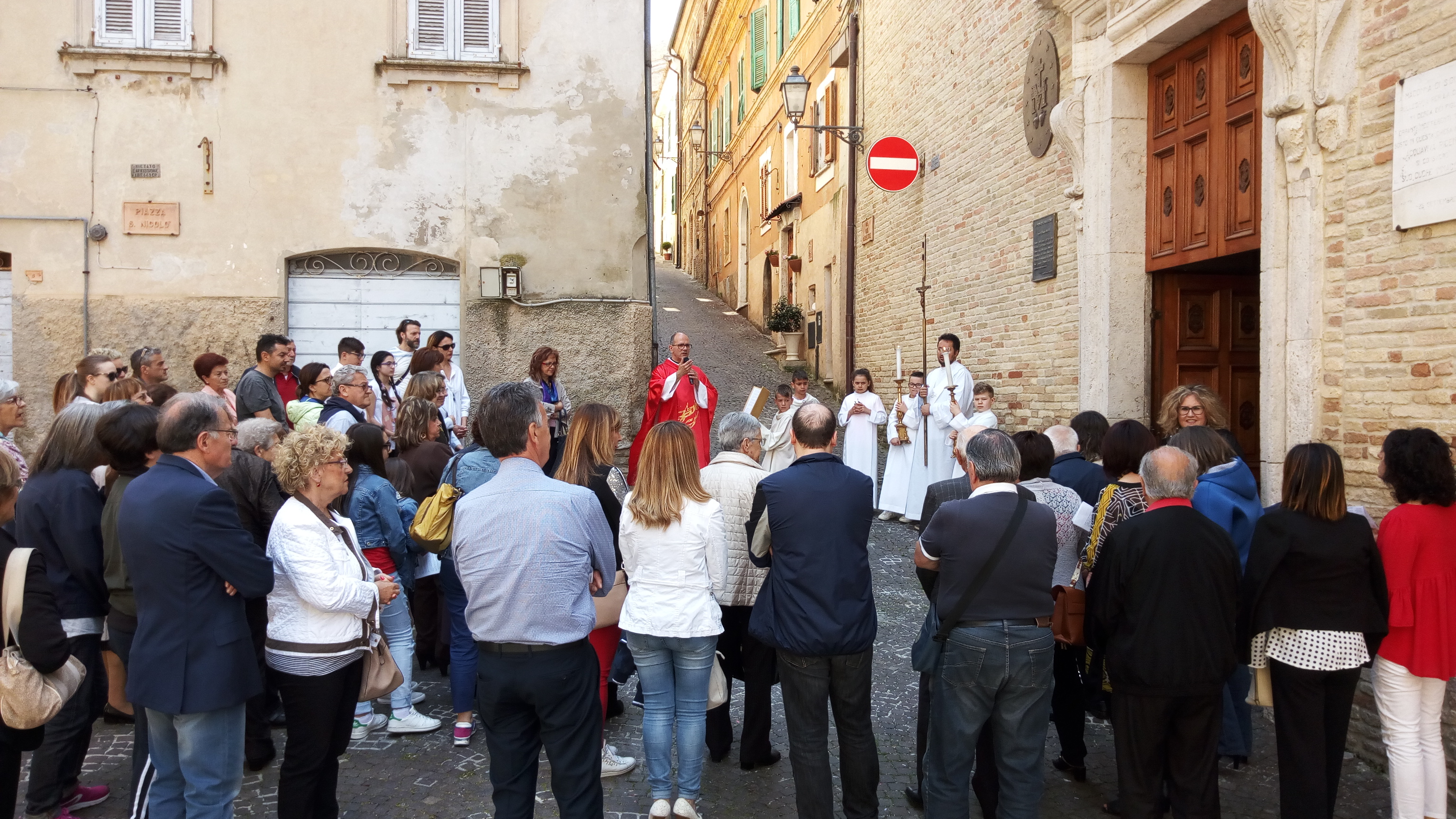 ACQUAVIVA PICENA – Padre Igino Troiani sacramentino originario di Acquaviva Picena è tornato alla Casa del Padre e gli acquavivani lo hanno ricordato nelle preghiere domenica 20 maggio solennità di Pentecoste. Al termine della Messa delle 11:15 il parroco don Alfredo ha benedetto la targa che padre Igino donò all’allora parroco di Acquaviva don Angelo Palmioli in occasione del suo cinquantesimo anniversario sacerdotale. Insieme alla targa padre Igino donò una riproduzione della medaglia Miracolosa ora esposta sulla parete esterna della parrocchia di san Niccolò ai lati della porta.