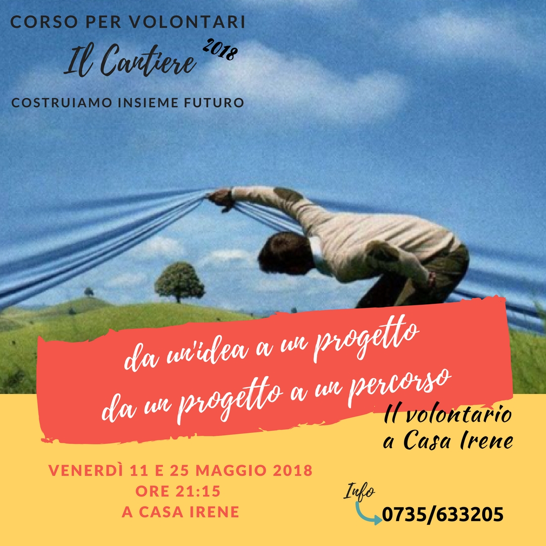 SAN BENEDETTO DEL TRONTO – Suor Charo, con le sorelle Oblate del Santissimo Redentore, concluderà il 25 maggio alle 21.15 il percorso di formazione dei 25 volontari de “Il Cantiere 2018” presso casa Irene, a San Benedetto del Tronto, coordinato da Amedeo Angellozzi, con l’ausilio della dott.ssa Annalisa Camaioni in veste di formatrice. I volontari invitati sono coloro che prestano servizio presso la casa di accoglienza, affiancando le suore e gli operatori, nelle diverse attività svolte all’interno di casa Irene, come ad esempio attività ludiche e ricreative, di cucina e socializzazione e laboratori manuali