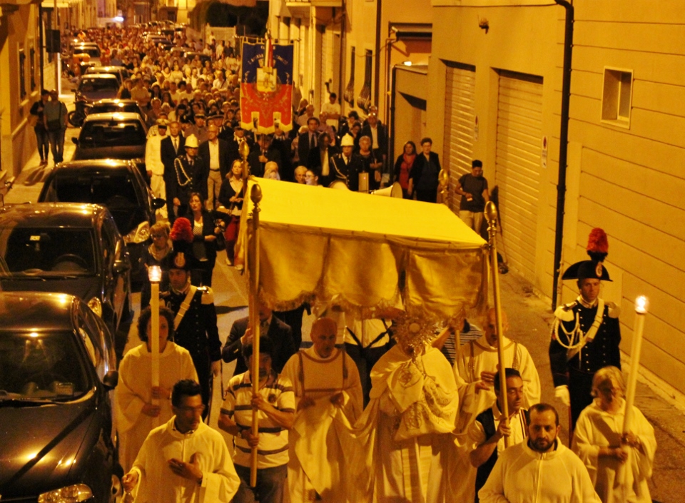 La processione attraverserà le seguenti vie: Pizzi, Gramsci, Ugo Bassi, Crispi fino alla Chiesa dell’Adorazione dei Padri Sacramentini.