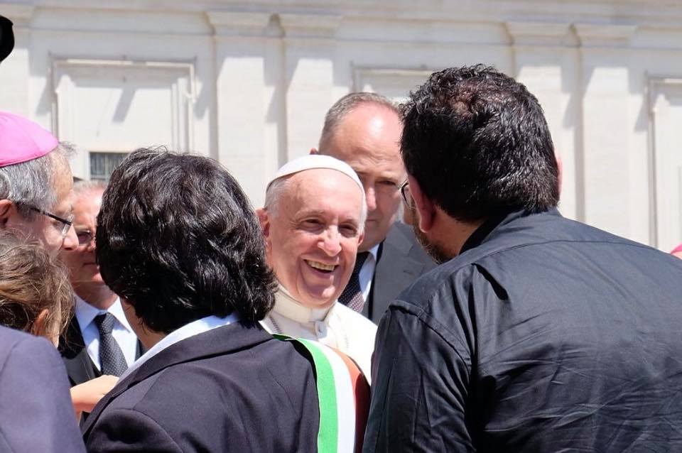 Il Sindaco Enrico Piergallini afferma: “Anche se l’incontro con il Papa è stato breve, è stato comunque un momento molto intenso. Impressionante è stato il sorriso che è riuscito a regalare a ciascuno di noi. Un sorriso spontaneo, per niente affaticato, realmente autentico come la sincerità degli abbracci dati a tutte le persone che si avvicinavano. Ha baciato i bambini ed è rimasto incuriosito dal suo stemma cucito sullo stendardo della Sacra Giubilare.
