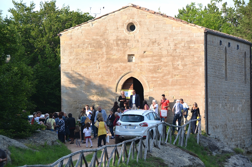 L’incontro era previsto all’aperto presso i giardini della “Casa Gioiosa” di Montemonaco. Il pericolo del maltempo ha fatto però trasferire il tutto nella vicina e storica (secolo XIV°) “Chiesa di San Michele” da tempo utilizzata quale Sala Convegni.