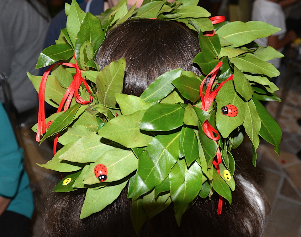 Sul capo di ogni bambino, eccitato e sorridente, le insegnanti deponevano la classica corona d’alloro.