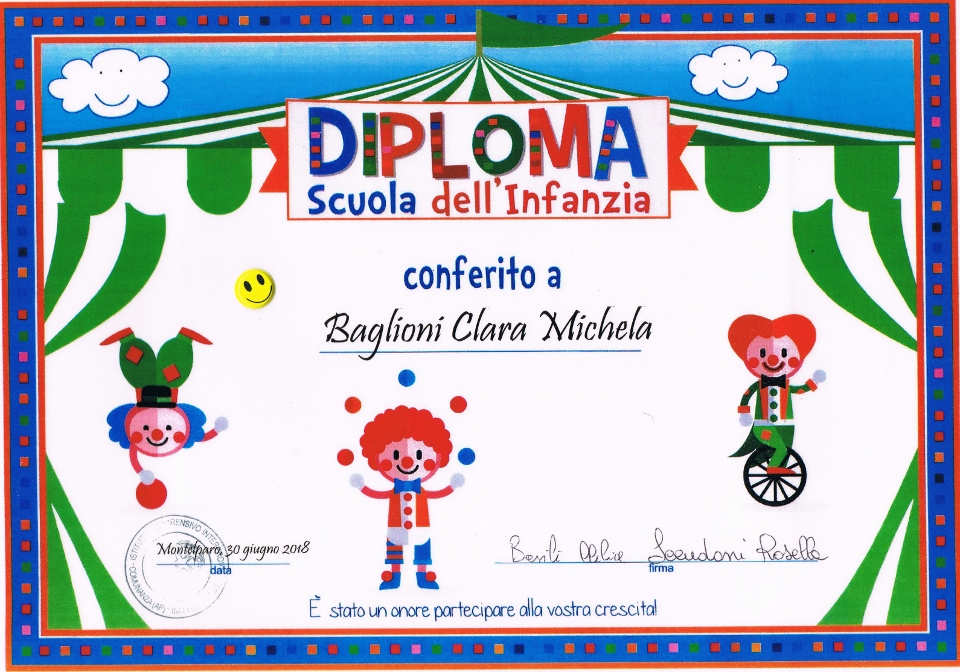 Il momento culminante è arrivato quando le insegnanti (anche loro con grande emozione!), salutando i bambini che, con il 2018, lasciano la Scuola dell’infanzia per entrare in quella Primaria, hanno “conferito” loro il “Diploma della Scuola dell’Infanzia”!