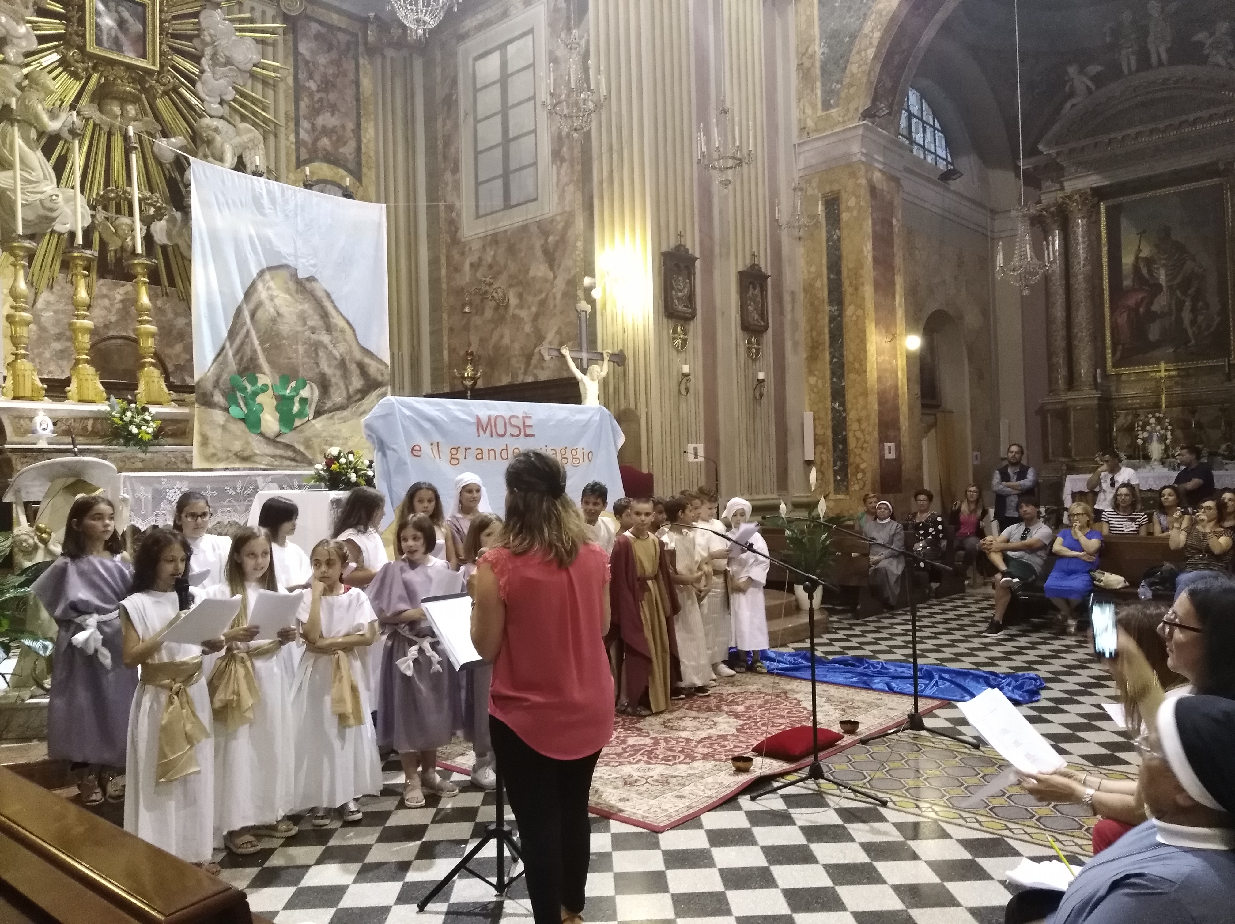 ACQUAVIVA PICENA – Domenica 24 giugno ad Acquaviva Picena dopo la Messa delle 19:00 i bambini che lo scorso maggio hanno ricevuto la loro Prima Comunione hanno rappresentato la storia dell’Esodo. La recita, intervallata dai brani musicali, eseguiti sempre dai bambini, ha raccontato le vicende del popolo d’Israele: la nascita di Mosè, le condizioni di schiavitù, il viaggio, l’incontro di Mosè con il Signore e la consegna delle Tavole della Legge. I bambini hanno ricevuto grandi applausi per la loro ottima preparazione. Un ringraziamento va a don Alfredo, Lorena, Giuliana, Tiziana e Valerio per aver collaborato alla realizzazione e poi don Alfredo ha aggiunto: “Un
