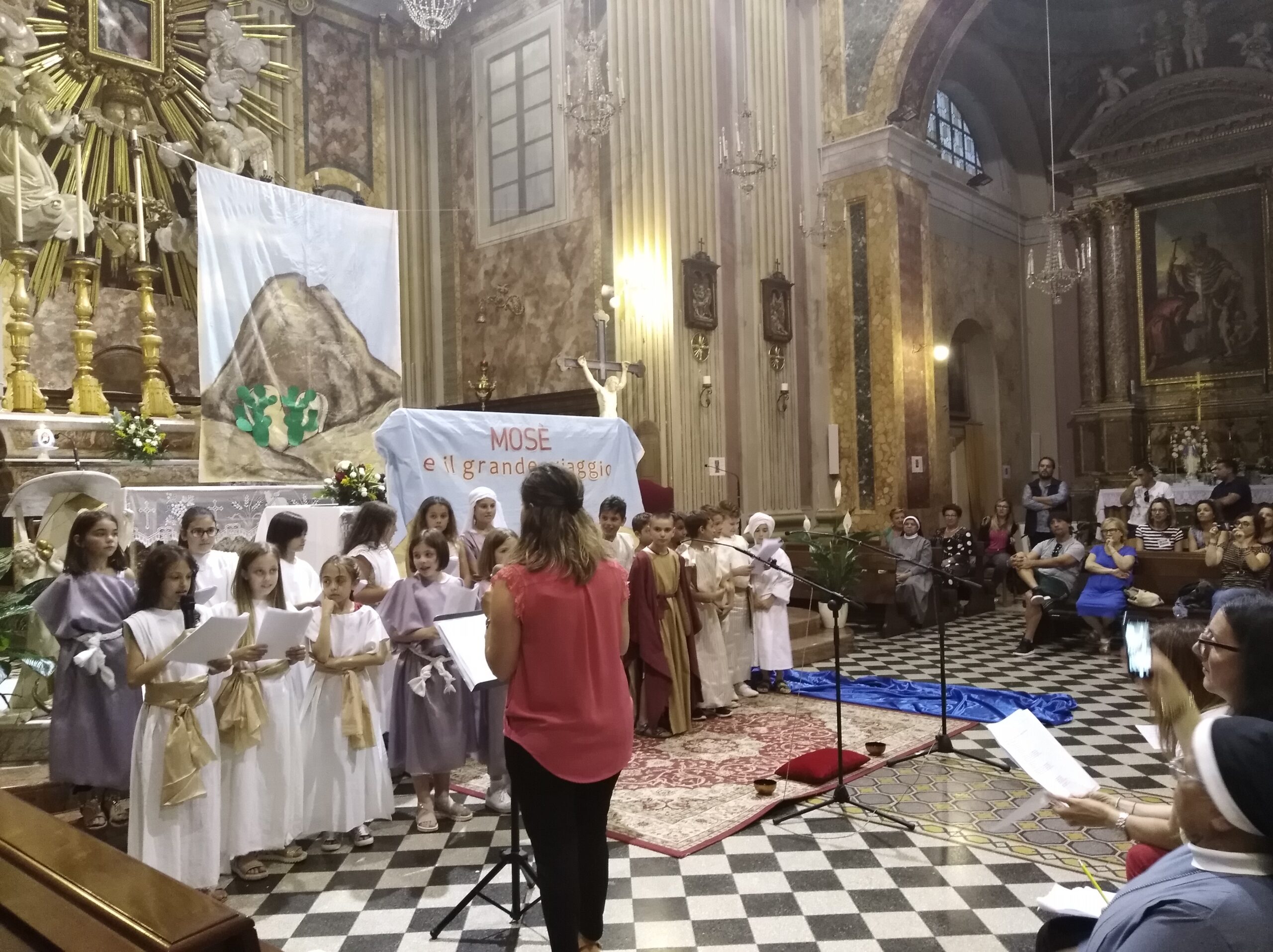 ACQUAVIVA PICENA – Domenica 24 giugno ad Acquaviva Picena dopo la Messa delle 19:00 i bambini che lo scorso maggio hanno ricevuto la loro Prima Comunione hanno rappresentato la storia dell’Esodo. La recita, intervallata dai brani musicali, eseguiti sempre dai bambini, ha raccontato le vicende del popolo d’Israele: la nascita di Mosè, le condizioni di schiavitù, il viaggio, l’incontro di Mosè con il Signore e la consegna delle Tavole della Legge. I bambini hanno ricevuto grandi applausi per la loro ottima preparazione. Un ringraziamento va a don Alfredo, Lorena, Giuliana, Tiziana e Valerio per aver collaborato alla realizzazione e poi don Alfredo ha aggiunto: “Un