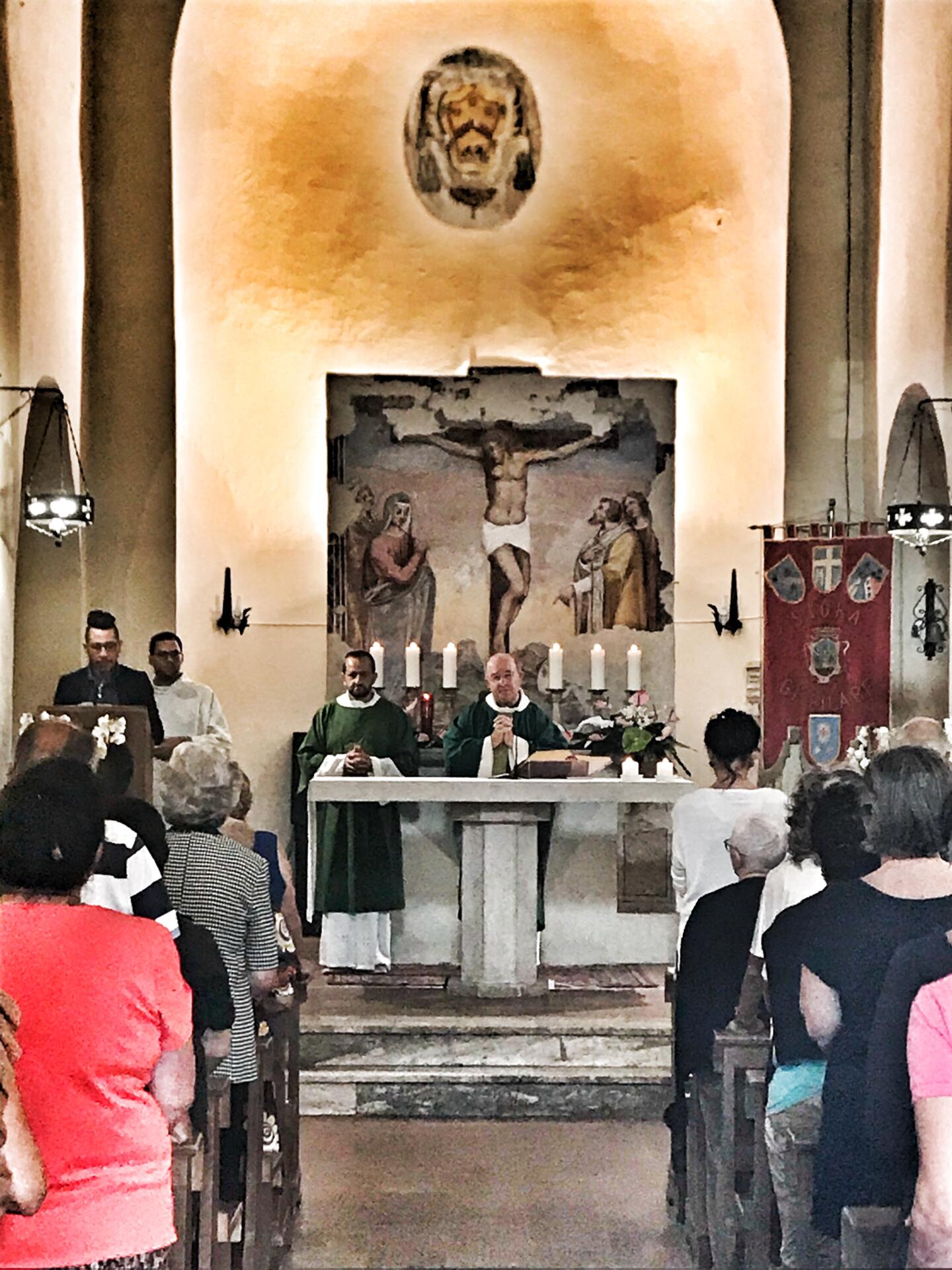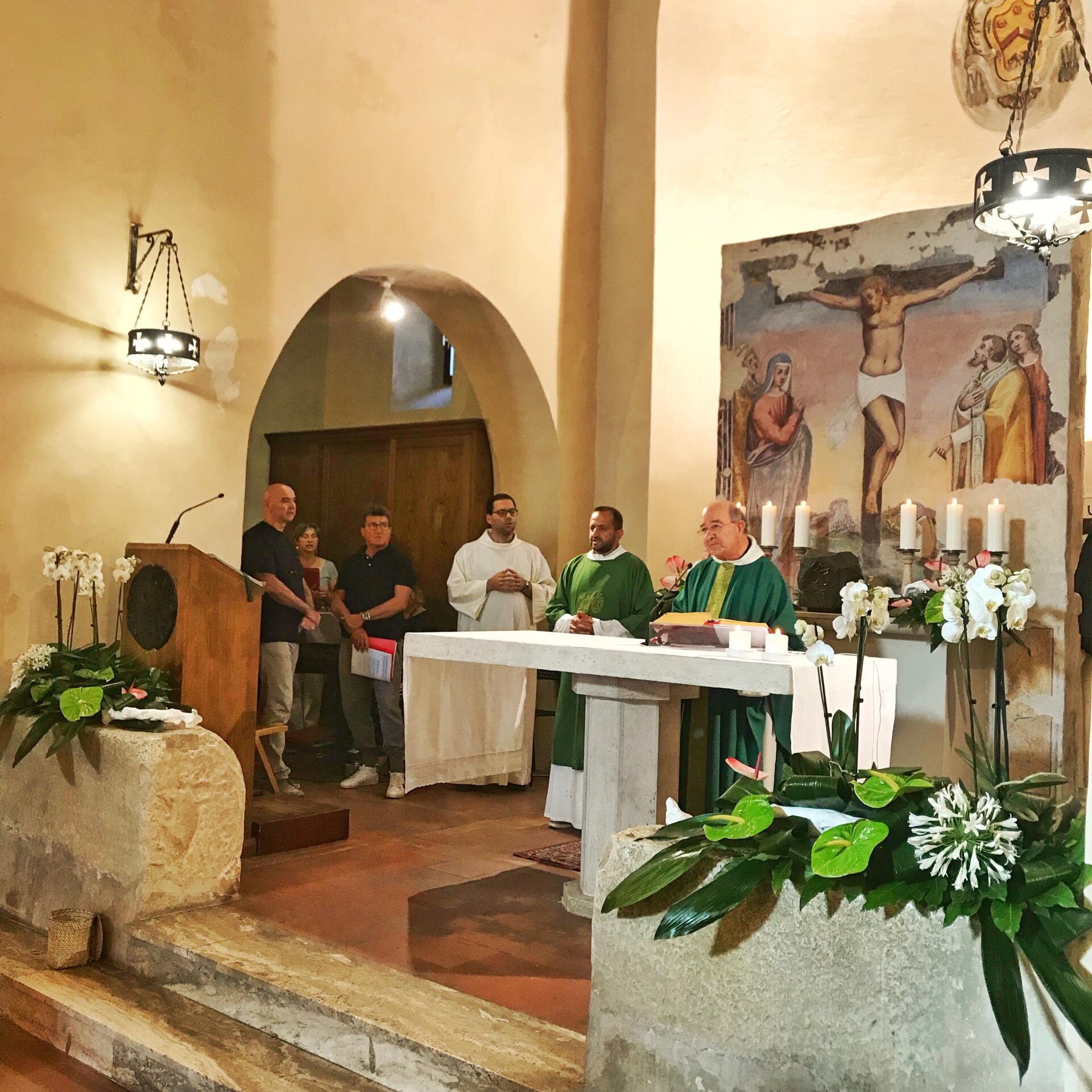 Alle ore 19, l’eucaristia presieduta da don Gabriele Paoloni, che ha accompagnato la sua parrocchia di “San Filippo Neri”. Nonostante fosse impegnato in un campo con i ragazzi, non ha voluto rinunciare ad essere presente.
