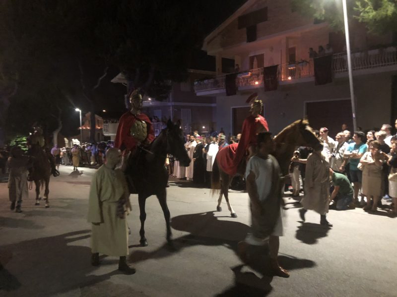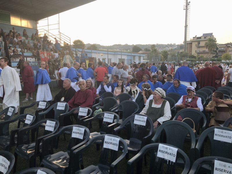 GROTTAMMARE – La Sacra Giubilare è giunta al suo evento culmine. Infatti, dopo la celebrazione della Santa Messa, presieduta dal vescovo Carlo e concelebrata dai parroci di Grottammare e da altri sacerdoti diocesani, si è svolto il corteo storico che dallo stadio comunale è giunto nel centro cittadino.