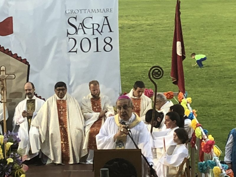 Durante l’omelia, il vescovo Carlo ha ricordato come all’inizio della Sacra Giubilare ci sia un fatto che ha coinvolto sia il Papa Alessandro III sia la popolazione di Grottammare, in una sorta di “logica di scambio”. Infatti il Papa aveva necessità di tipo materiale, essendo miracolosamente uscito indenne da una tempesta, e Grottammare, da parte sua, è venuta incontro a questo bisogno. Grato per questa accoglienza, il Papa ha concesso l’indulgenza plenaria ogni volta che il primo luglio cada di domenica. Il dono spirituale è stato fatto per un’accoglienza materiale.