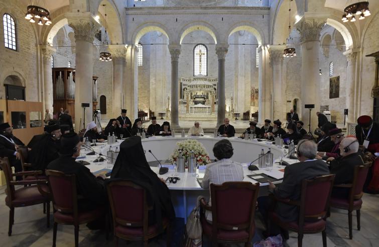 né sulla piazza di san Nicola né sul lungomare, né attraverso i media. Quelle parole e quei gesti che il Papa, i patriarchi e i vescovi si sono sono scambiati attorno a quella tavola rotonda approntata nella navata centrale della basilica: un incontro fisicamente “a porte chiuse”, ma spiritualmente a porte spalancate per accogliere il dolore e per diffondere la speranza. Lì, in quella circolarità simbolo della comunione trinitaria, lì in quel consesso in cui nessuno occupava il primo posto e tutti lo hanno lasciato all’unico Signore, lì i partecipanti hanno potuto dirsi l’uno all’altro cosa ardeva nel loro cuore camminando insieme in cerca della pace che viene dal Signore, lì hanno potuto narrare e ascoltare le sofferenze e le speranze dei cristiani delle rispettive Chiese, lì hanno potuto rendere grazie al Signore per la comune testimonianza di fede che le tragiche vicende di quelle terre sollecitano nei discepoli del Signore, lì hanno potuto rinnovare insieme la memoria dei luoghi e dei tempi in cui per la prima volta è risuonato il termine di “cristiani” per indicare “quelli della via”, i seguaci dell’uomo di Nazareth morto e risorto per la salvezza di tutti.