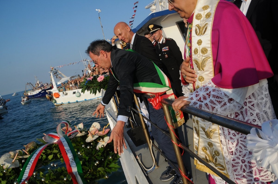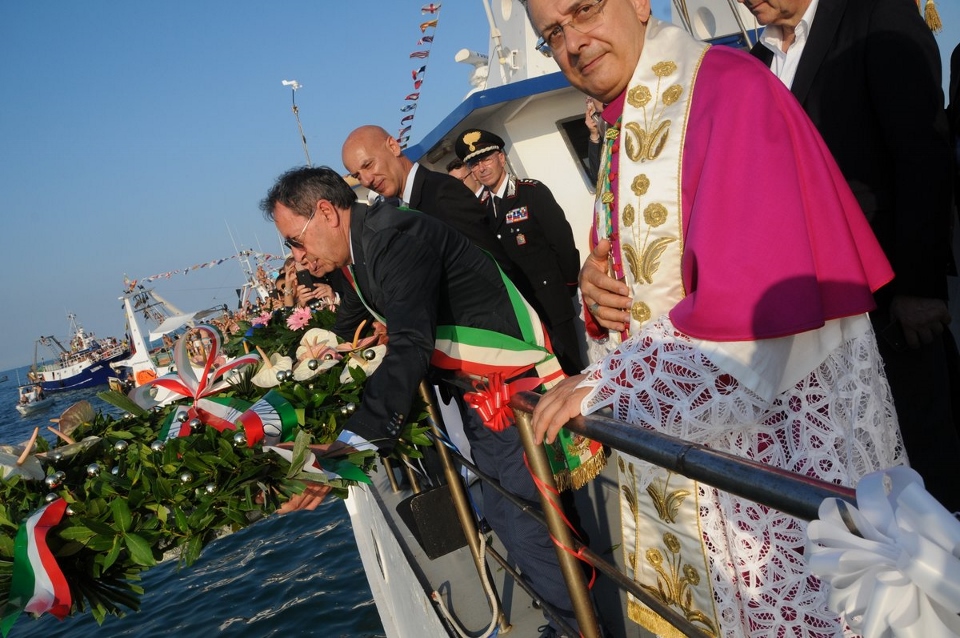Come da tradizione, una corona d’alloro è stata gettata in mare nello specchio d’acqua antistante la chiesa di San Francesco da Paola, in ricordo di quanti, per svolgere il loro civico dovere o per sostenere le proprie famiglie, hanno perso la vita in mare. Il gesto è stato salutato dal suono festante di tutte le imbarcazioni che si sono unite al particolare corteo religioso.