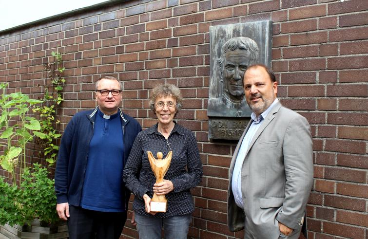 Da 22 anni Dorothea Hahn si reca tre o quattro volte l’anno in Ghana, nell’Africa occidentale. Si ferma all’incirca un mese e incontra tante persone conosciute nei complessivi 64 viaggi fatti fino ad ora. Nel prossimo autunno partirà per la 65ª volta. Insegnante di fisica e religione presso la Liebfrauengymnasium di Bonn, città dove è nata, la signora Hahn, ora in pensione, visitò il Ghana la prima volta nel 1996, rimanendo impressionata dalle condizioni di miseria e diseguaglianza sociale della popolazione, soprattutto dalla situazione di discriminazione e limitazione alla istruzione della bambine e delle ragazze. Da laica, in contatto con una realtà sociale ed educativa avanzata come quella tedesca, rientrata in Germania, decise di agire, coinvolgendo colleghi, amici, familiari, studenti. Sarà stato il sorriso perenne di questa indomita donna di 68 anni, ma da subito la sua proposta fece breccia. Lei stessa in questi anni ha sempre evidenziato la sua sorpresa nel vedere come le persone colgano il messaggio delle piccole offerte, dei mercatini parrocchiali e fiere del dolce, del passa parola. Dopo aver fondato la società per azioni “Eine-Welt-AG” (“Un Mondo”) ha scelto come partner l’associazione umanitaria Don Bosco Mondo, legata alla famiglia Salesiana. Ad oggi Dorothea Hahn ha raccolto oltre un milione di euro, impegnato in questi 22 anni per realizzare sette scuole e tre case residenziali per fanciulle, fornite di materiale didattico oltre a numerose borse di studio, con la scelta di dedicarsi all’istruzione e alla formazione soprattutto delle fanciulle.