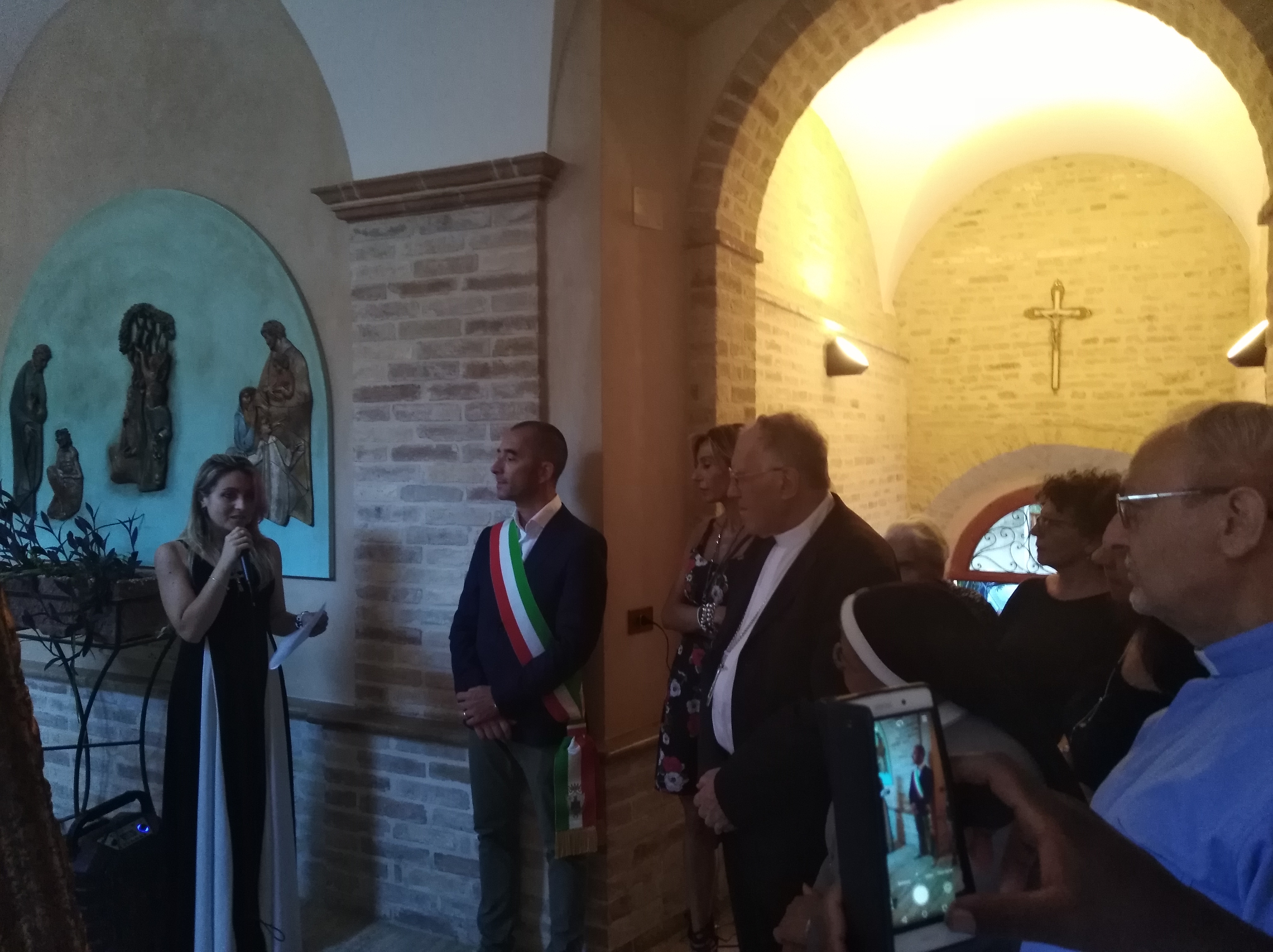 ACQUAVIVA PICENA – Presso il convento degli agostiniani di Acquaviva Picena è stata inaugurata la mostra d’arte di Pamela Primiceri. Pamela è nata a Gallipoli e vive a Melissano in provincia di Lecce, sin da ragazzina coltiva la passione per il disegno e la pittura, perfezionando le sue doti presso il Liceo Artistico di Parabita, Lecce. Tante le tecniche adottate: olio su tela, pittura su stoffa, acquerello, cartapesta, pirografia e altro. Partecipa a concorsi di pittura dall’età di quindici anni. Presenti all’inaugurazione oltre l’autrice dei dipinti, il sindaco di Acquaviva Rosetti, l’assessore alla cultura Barbara Riga, il priore del convento di Acquaviva padre Luigi Pingelli e il vescovo emerito Sua Eccellenza Monsignor Gervasio Gestori. Il sindaco dopo il taglio del nastro ha detto: “Io non sono un critico d’arte, ma posso esprimere quello che sento vedendo questi quadri, a me piacciono molto i colori e quindi apprezzo queste opere perché contengono questa nota che mi appartiene. Mi piace l’idea che la mostra sia stata allestita in questo chiostro perché di per sé ha già una notevole importanza artistica. È bello vedere arricchito il calendario degli eventi estivi di Acquaviva, quindi ringrazio i frati e Pamela per aver realizzato questa mostra”. Pamela Primiceri ha detto: “Ringrazio l’amministrazione comunale per aver permesso questa mostra, ringrazio per l’ospitalità i frati e il priore padre Luigi, ringrazio per la presenza Sua Eccellenza Monsignor Gestori. Io cerco di esprimere nelle mie opere quello che sento, le emozioni del momento che vivo, nei miei quadri è presente simbolicamente la mia vita. Metto sulla tela la mia vita. spero che i miei disegni siano di vostro gradimento. Io vi aspetto per due settimane dalle 20:00 alle 23:00 tutte le sere al chiostro del convento”. Padre Luigi Pingelli ha detto: “Io ho una discreta cultura artistica e vedo in queste opere un classicismo che si affianca alla modernità e venature di impressionismo. Al di là della tecnica ognuno di noi poi vede in queste opere che ha di fronte ciò che vuole, per ognuno esiste un diverso giudizio. Faccio i miei complimenti a Pamela”. Sua Eccellenza Monsignor Gestori ha detto: “I quadri sono subito comprensibili, diretti. Io vedo presente in essi la tradizione, i valori, l’umanità. Cose alquanto rare di questi tempi. Sono delle belle opere”.
