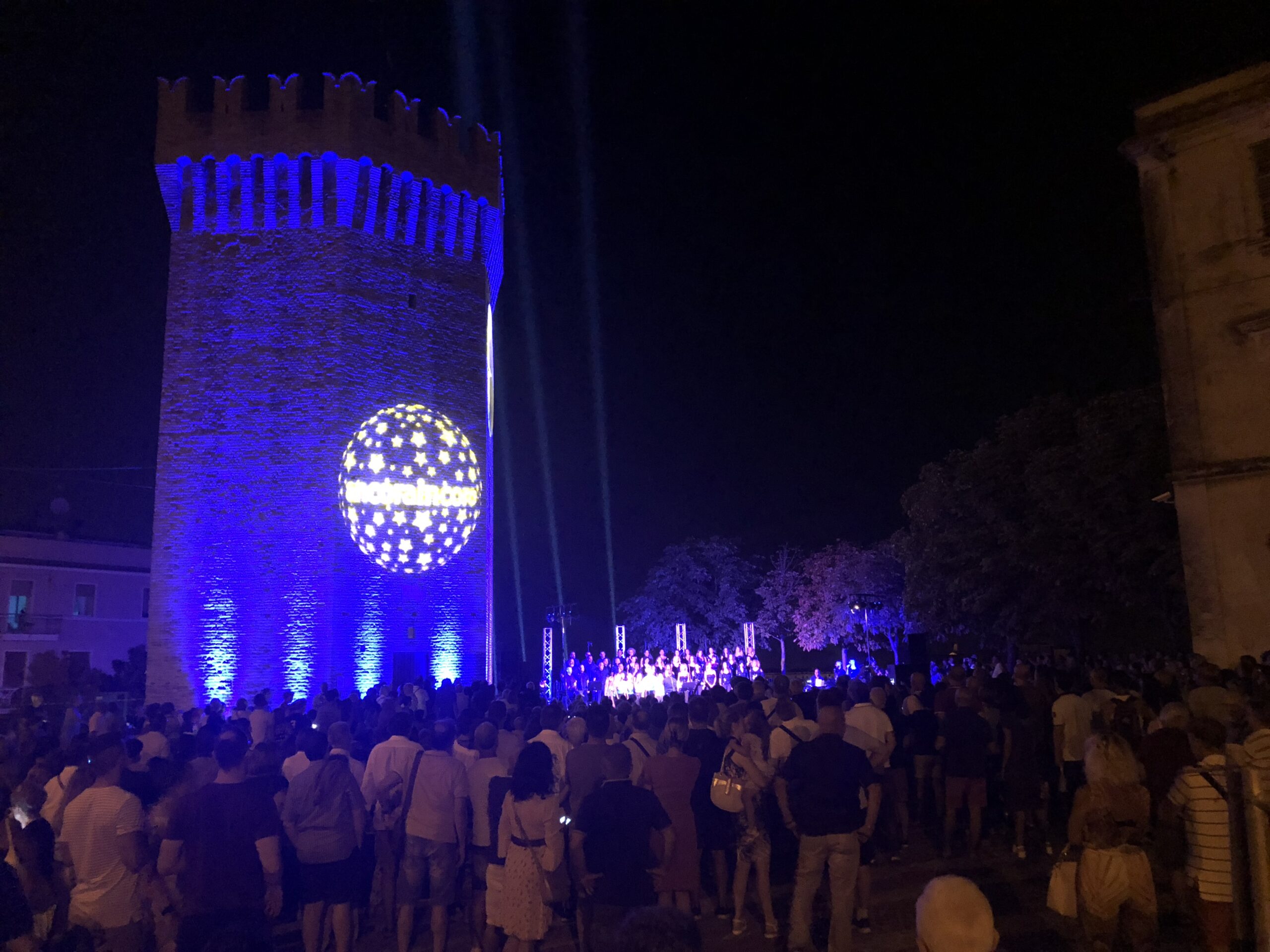 I membri del coro sono saliti sul palco sulle note di “Figli delle stelle” e hanno poi iniziato cantando brani musicali degli anni ‘70, a partire da “Higher and higher”. La piazza era gremita tanto da sambenedettesi quanto da turisti, visto che quello organizzato dagli “ANCORAinCORO” è ormai uno degli appuntamenti fissi delle estati rivierasche. Grande commozione nei presenti ha suscitato il brano di chiusura “Nuttate de luna”, dedicato a quanti persero la vita nella tragedia dell’imbarcazione Rodi avvenuta l’antivigilia del Natale 1970.