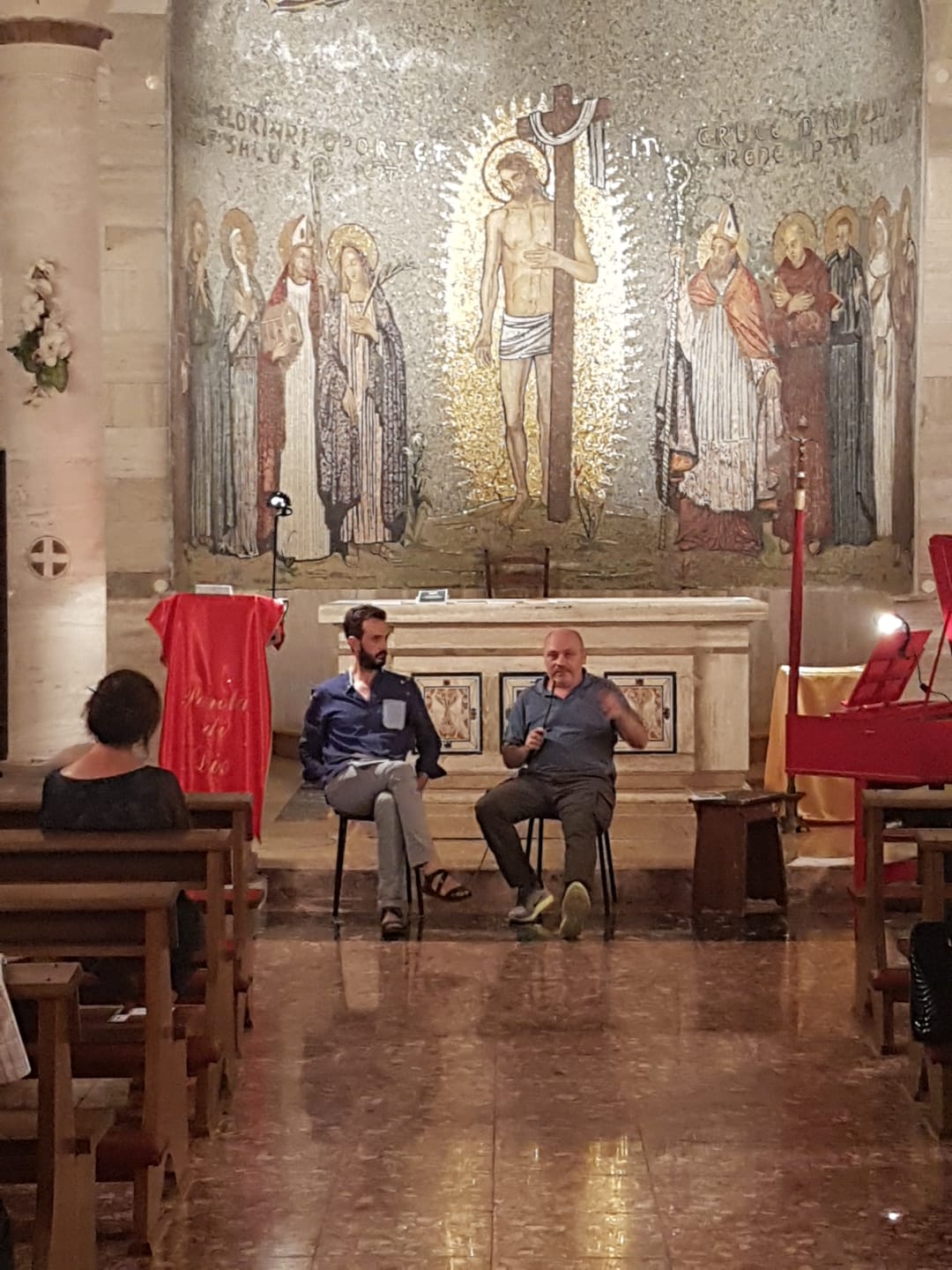 Grande successo per la serata organizzata dai musei Sistini del Piceno ed il comune di Rotella presso Castel di Croce, nella Chiesa di San Severino. Un riuscito connubio di musica e poesia, un appassionato dialogo sui libri (…e ancora libri…) tra Alessandro Pertosa e L’autore Lucilio Santoni, scrittore di successo, che hanno amabilmente disquisito sul valore dello strumento cartaceo, sul senso, sull’importanza per cambiare le persone.