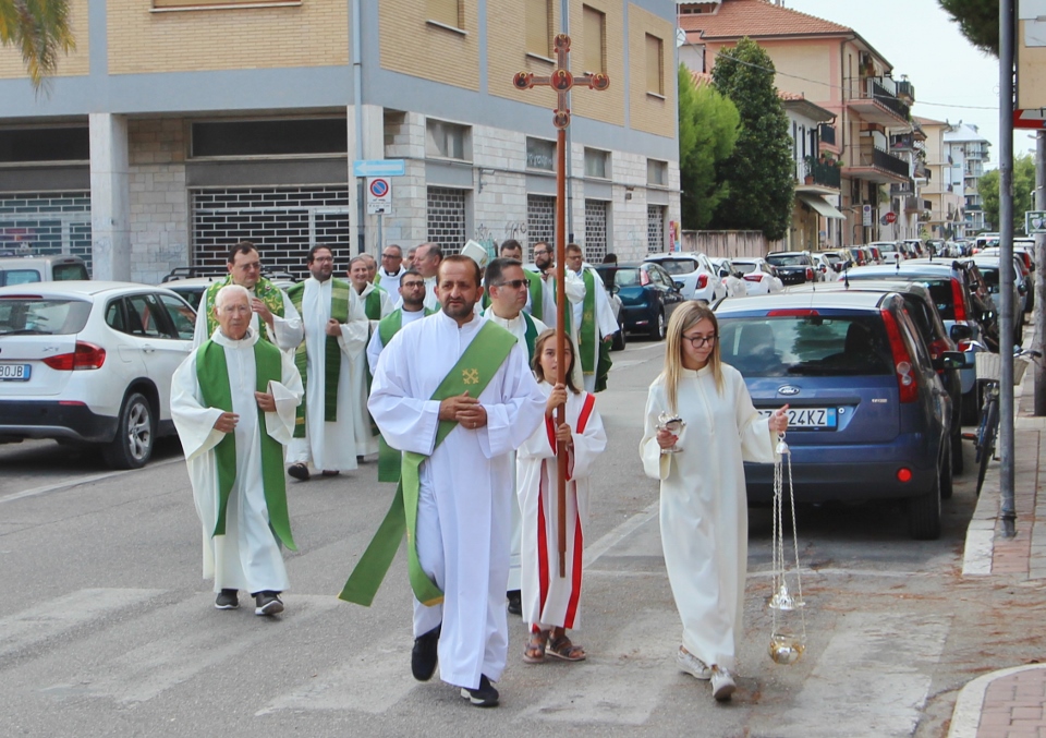 SAN BENEDETTO DEL TRONTO – Chiesa gremita a San Benedetto del Tronto per l’ingresso del nuovo parroco, Don Gian Luca Rosati, sacerdote inviato dal Vescovo Carlo Bresciani presso la parrocchia di Cristo Re, retta fino al 31 agosto da Don Pio Costanzo.