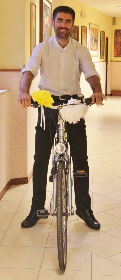 Al termine della celebrazione, la comunità di Cristo Re ha voluto regalare al nuovo parroco una bella bicicletta, perchè, come hanno affermato i referenti scherzando: “ci sarà molto da pedalare in parrocchia”.