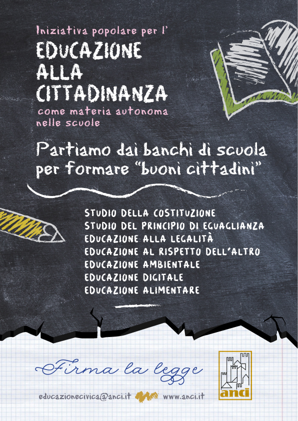“L’ordinamento attuale, in vigore dal 2008, non garantisce in ambito scolastico lo sviluppo delle competenze di Cittadinanza e Costituzione poiché esse sono affidate in modo generico a tutti i docenti. A tale scopo, da più anni, cerchiamo attraverso il POF dell’Istituto Scolastico Comprensivo di lavorare su questi temi attraverso specifici progetti educativi – commenta il Sindaco – La proposta vuole che l’insegnamento dell’educazione alla cittadinanza diventi materia autonoma e con voto indipendente in modo che si trasmetta chiaramente agli studenti e alle loro famiglie il senso e l’importanza, coralmente riconosciuti, dell’essere cittadini competenti e consapevoli della loro appartenenza alla Comunità. I Comuni si metteranno quindi a disposizione per accompagnare con progetti integrativi dell’offerta formativa l’introduzione dell’ora autonoma di educazione civica e la conoscenza dei principi che regolano la vita consociata, già ritenute centrali fin dal 1958, quando fu Aldo Moro a proporre l’inserimento della disciplina dell’educazione civica nei curricula scolastica”.