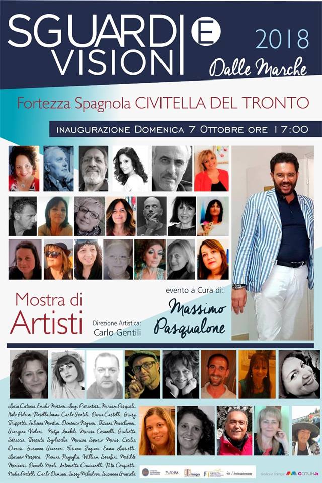 “Si tratta di un ottimo gruppo di artisti delle Marche- precisa Pasqualone- che fa conoscere la regione con degli sguardi molto intensi, interessanti ed innovativi”. Il direttore artistico Carlo Gentili precisa: “Si tratta di un evento significativo realizzato nel magico spazio della fortezza spagnola con gli artisti marchigiani che presentano temi dal paesaggio, alla natura morta fino all’astrazione”. Artisti che esporranno alla fortezza spagnola: Lucia Catania, Emidio Mozzoni,Luigi Pierantozzi, Miriam Pasquali, Italo Pulcini, Rosella Iommi, Daria Castelli, Giusy Trippetta, Silvana Martini,Giandomenico Negroni, Tiziana Marchionni, Giorgina Violoni, Katja Amabili , Marisa Cesanelli, Giulietta Stracci, Teresita Svolacchia, Carlo Gentili, Cecilia Dionisi, Susanna Giannoni, Tiziana Fagiani, Emma Luzzietti, Romina Ragaglia, William Serafini, Matilde Menicozzi, Daniele Merli, Antonietta Crucianelli, Rita Cerquetti, Nadia Portelli, Carlo Damiani, Sissy Mihailova, Susanna Graciela Rastelli, Luciano Nespeca, Marisa Spurio Maris
