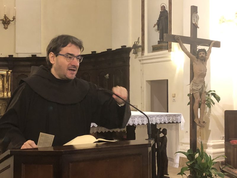Ha preso poi la parola Padre Michele dei Frati Minori che ha letto e commentato il Cantico delle Creature di San Francesco, invitando i presenti a leggere il testo frequentemente perché esso ci dice chi siamo noi, cos’è il creato e chi è Dio. Francesco – ha proseguito il religioso – ringrazia Dio per tutto quello che ha fatto e questo inevitabilmente ci ricorda che non ci siamo fatti da soli e che allo stesso tempo non abbiamo fatto tutto ciò che ci circonda. Dunque tutto è dono. Dopo la lode del creato, Francesco ringrazia per coloro che perdonano e dunque egli sapientemente lega la realtà naturale a quella sociale. È stato proprio questo legame il fil rouge della passeggiata tematica che tutti gli intervenuti, soprattutto giovani delle scuole medie e superiori accompagnati dai loro docenti, hanno intrapreso per le vie della città.