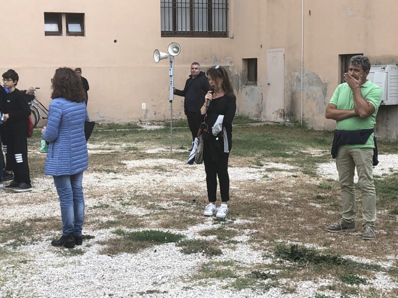Nel giardino del Comune i ragazzi hanno recitato l’Infinito di Leopardi e il Cantico delle creature di San Francesco e hanno poi eseguito con il flauto il brano Dolce sentire.