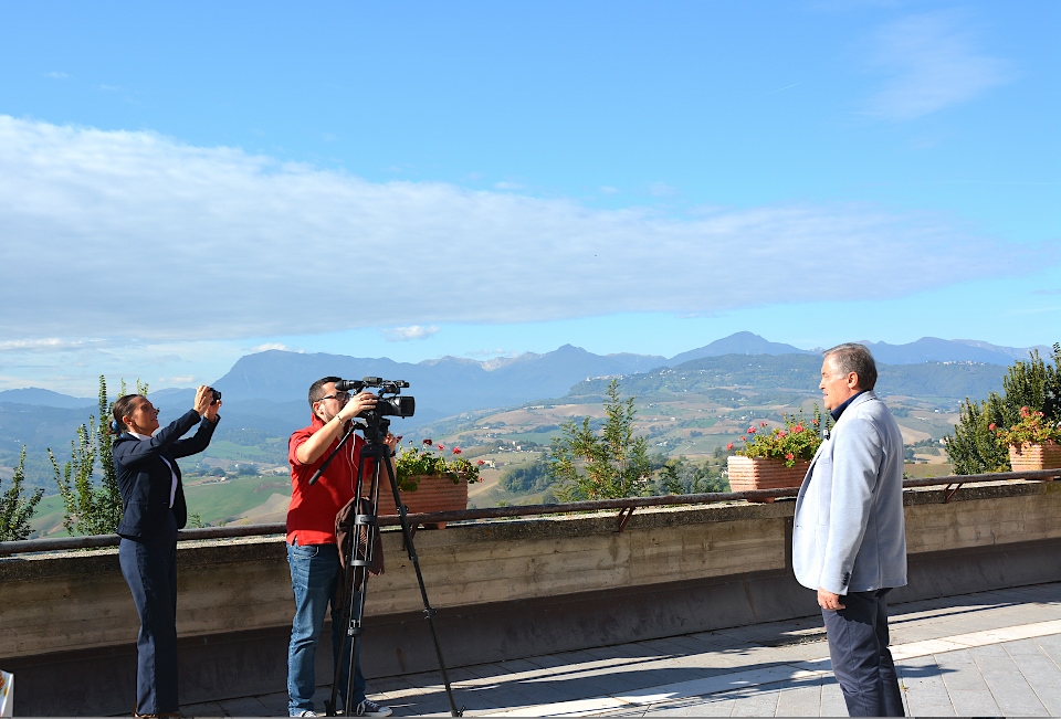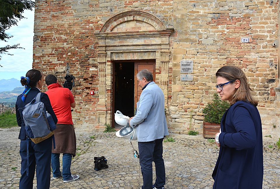 Montelparo, tra le pieghe e le piaghe delle chiese incrinate dal sisma, un Comune che non si arrende. Un borgo incantato che non nasconde le sue ferite e mostra fiero una capacità di rinascita unica. Una tavola imbandita ci ha accolto sulla terrazza per una magia senza fine. La frutta, il vino, il miele, i pomodori. Le sette chiese, la terrazza, il museo degli antichi mestieri in bicicletta. Una magia senza fine! Con il sindaco Marino Screpanti, la guida turistica Beatrice Screpanti, Giuseppe Mariucci (in veste di presidente dell’Associazione Culturale locale, ma anche di fotografo e corrispondente del giornale telematico “L’Ancora on line”), erano qui Elisabetta Cocci e Gabriele Vitali (Casale Vitali), Maria Claudia Zamponi e Adel Chehida (apicoltura Marini), Maurizio Curi (azienda agricola La Golosa), Umberto Vespasiani (azienda agricola Francesca Mercuri). Con “L’autentico” stiamo per tornare, pronti a incantarvi con le meraviglie del paese, Montelparo, delle sette chiese, del museo dei mestieri ambulanti, del chiostro agostiniano. Il paese sul colle a metà strada tra i Monti Sibillini e il mare Adriatico nella magica Valle dell’Aso!