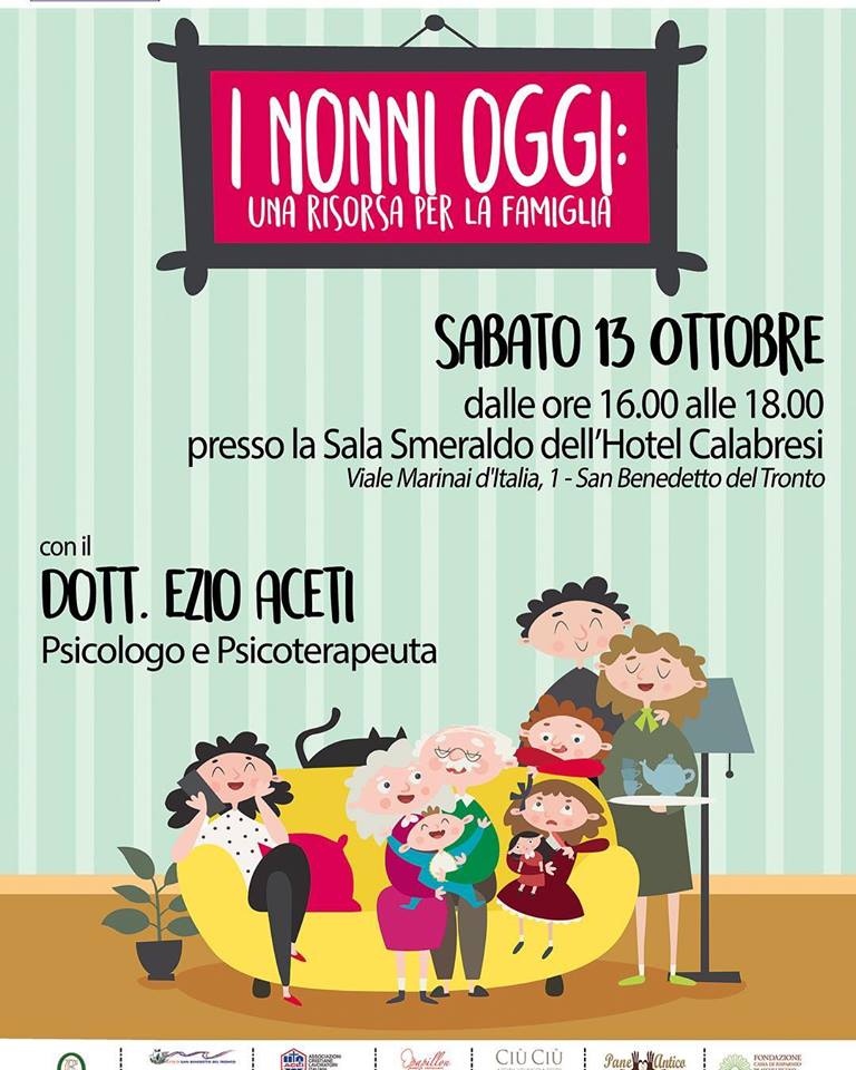 Per questo vi da appuntamento a sabato 13 ottobre alle ore 16 presso la sala Smeraldo dell’Hotel Calabresi di San Benedetto del Tronto. A parlarci de “I nonni oggi” ci sarà lo psicologo e psicoterapeuta Ezio Aceti.
