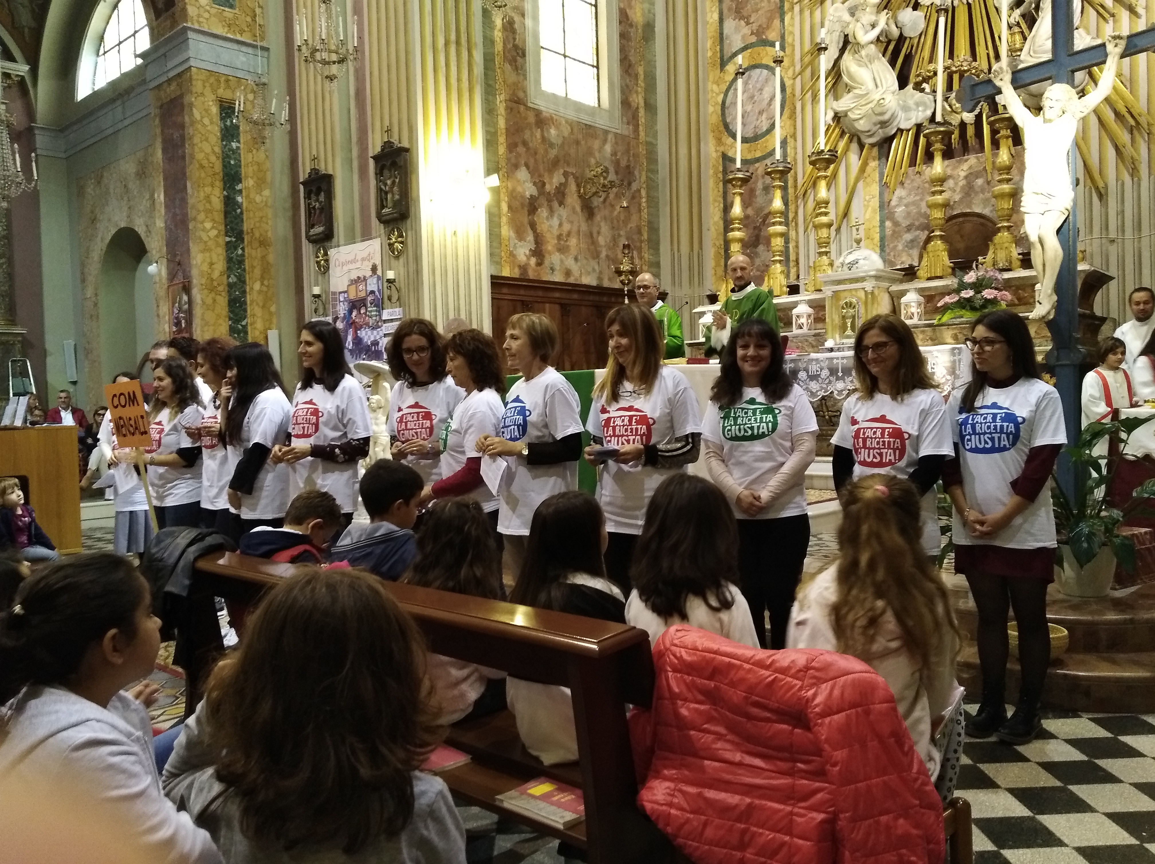 ACQUAVIVA PICENA – Ad Acquaviva Picena domenica 21 ottobre con una grande festa è iniziato ufficialmente il cammino ACR 2018/2019 Ci prendo gusto, dei bambini e ragazzi di Acquaviva. In piazza san Niccolò i bambini con le loro famiglie sono stati accolti dagli educatori e da una ricca colazione. Dopo i giochi tutti hanno partecipato insieme alla santa Messa delle 11:15 animata dai bambini e dalle loro famiglie. Durante la Messa il parroco don Alfredo ha consegnato insieme alle magliette ACR anche il mandato agli educatori. Nell’omelia don Alfredo ha ricordato a tutti che una buona tavola è ricca sì di cose buone da mangiare, ma più importante è sedersi a tavola insieme alle persone a cui si vuole bene, alle persone più bisognose e ricordarsi di non sprecare il cibo che il Signore ogni giorno dona ai Suoi figli. Don Alfredo ha aggiunto di ricordarsi le parole rassicuranti di Gesù: “Non vi preoccupate di ciò che mangerete o di come vi vestirete, il Signore sa di cosa avete bisogno. Cercate piuttosto il Regno di Dio, il resto vi sarà dato in aggiunta”. A tutti i fedeli don Alfredo ha consegnato un particolare segnaposto con il logo ACR 2018/2019 e con il testo del Padre Nostro nell’ultima traduzione ufficiale. Ogni gruppo di catechismo ha portato in chiesa una parte dell’immagine ACR di quest’anno, così da ricomporre per intero tutto il puzzle. La giornata di festa è proseguita per don Alfredo, gli educatori e le loro famiglie al ristorante 1941 di Acquaviva.