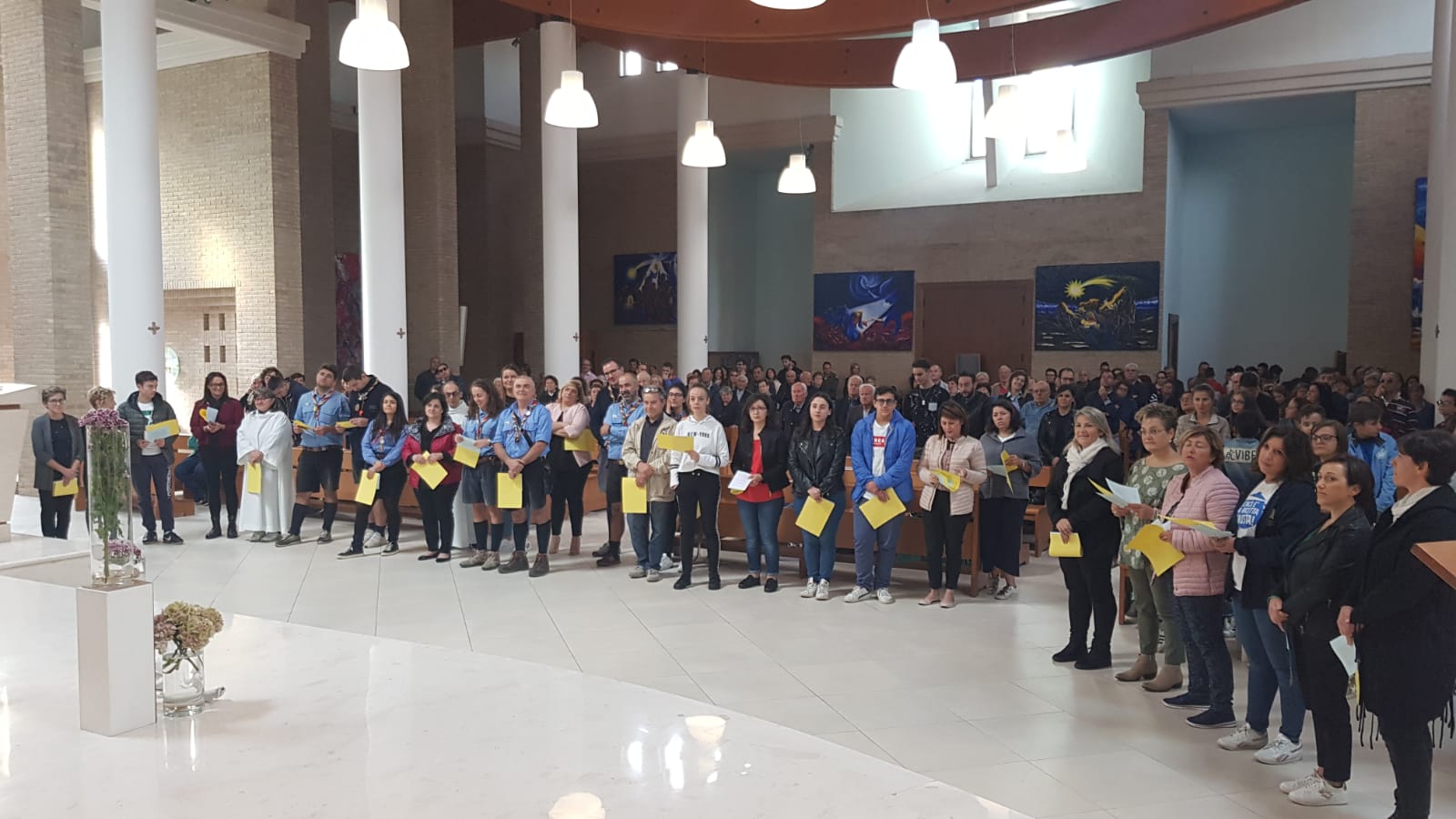 Catechisti, educatori dell’Acr e capi scout dell’Agesci davanti alla comunità, riunita per la celebrazione dell’eucaristia, si sono impegnati ad accogliere, meditare e annunciare la Parola di Dio, a testimoniare la propria fede con la vita, ad accompagnare i più giovani, loro affidati, per introdurli alla vita della comunità cristiana, nella Chiesa.