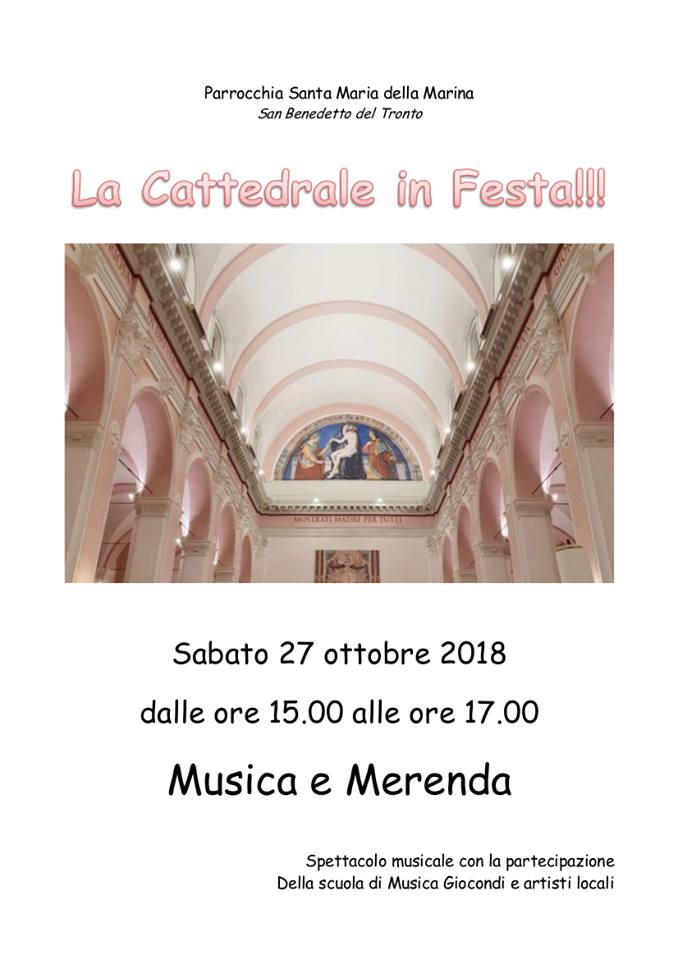 DIOCESI – Sabato 27 ottobre in Piazza Nardone a San Benedetto del Tronto, si terrà la festa per la riapertura della Cattedrale Madonna della Marina. Leggi l’articolo VIDEO e FOTO Vescovo Bresciani: “Cattedrale, segno dell’unità della Chiesa locale”