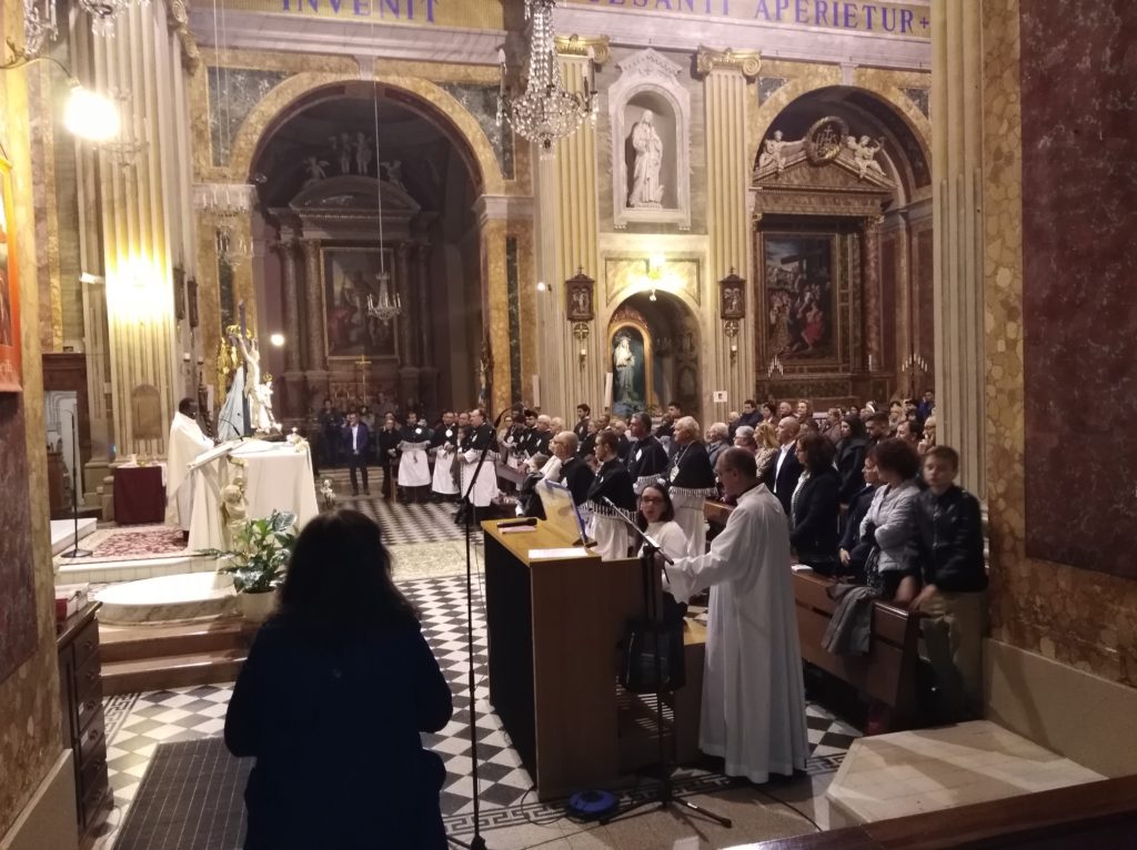ACQUAVIVA PICENA – Domenica 28 ottobre ad Acquaviva Picena, nonostante l’allerta meteo avesse provocato un po’ di incertezza, si è snodata la solenne processione per le vie del paese in onore della Madonna del Rosario. Don Alfredo, padre Emil, i confratelli e numerosi fedeli terminata la processione si sono ritrovati in chiesa per pregare insieme alla Messa delle 18:30. Durante la Messa in onore della Madonna è stato ricordato anche il maresciallo Alberto Petruzzi nell’anniversario della sua morte. Presenti il sindaco Rosetti, il vice sindaco Balletta, l’assessore alla cultura e turismo Riga e il Maresciallo Comandante della stazione dei carabinieri di Acquaviva Luca Sansiveri. Alla Messa inoltre sono stati accolti con una benedizione anche i nuovi confratelli: Gianmarco, Leo, Lorenzo, Tommaso e Giancarlo. Si è pregato per i cinque continenti ricordando le difficoltà che sono chiamati ad affrontare ogni giorno. Si è pregato inoltre per i giovani, per le donne, per gli anziani e i malati e per tutti coloro che sono in difficoltà. Sono stati meditati anche alcuni passi del Vangelo dove Gesù mette in luce la Sua Missione e il Suo progetto di salvezza.