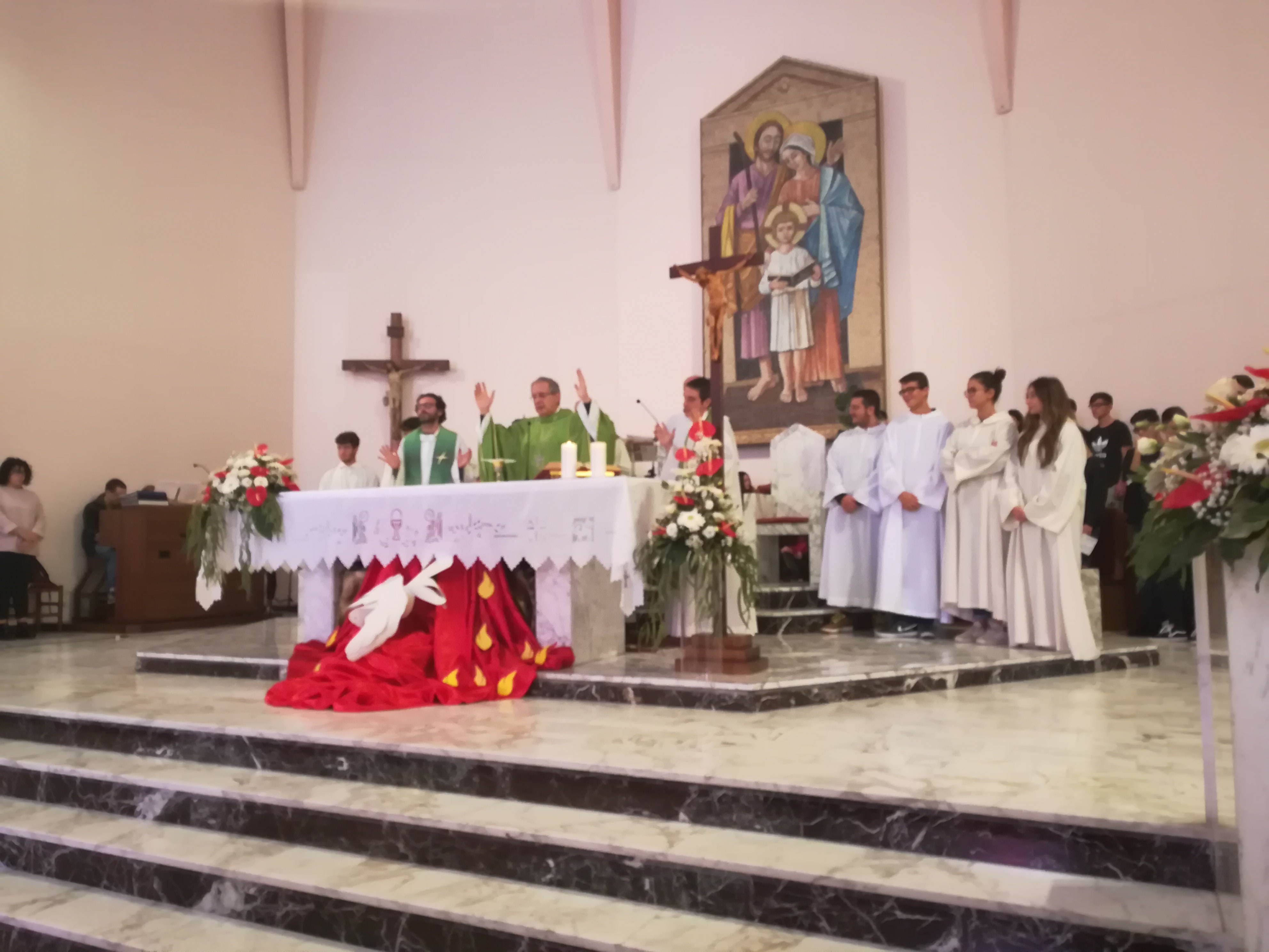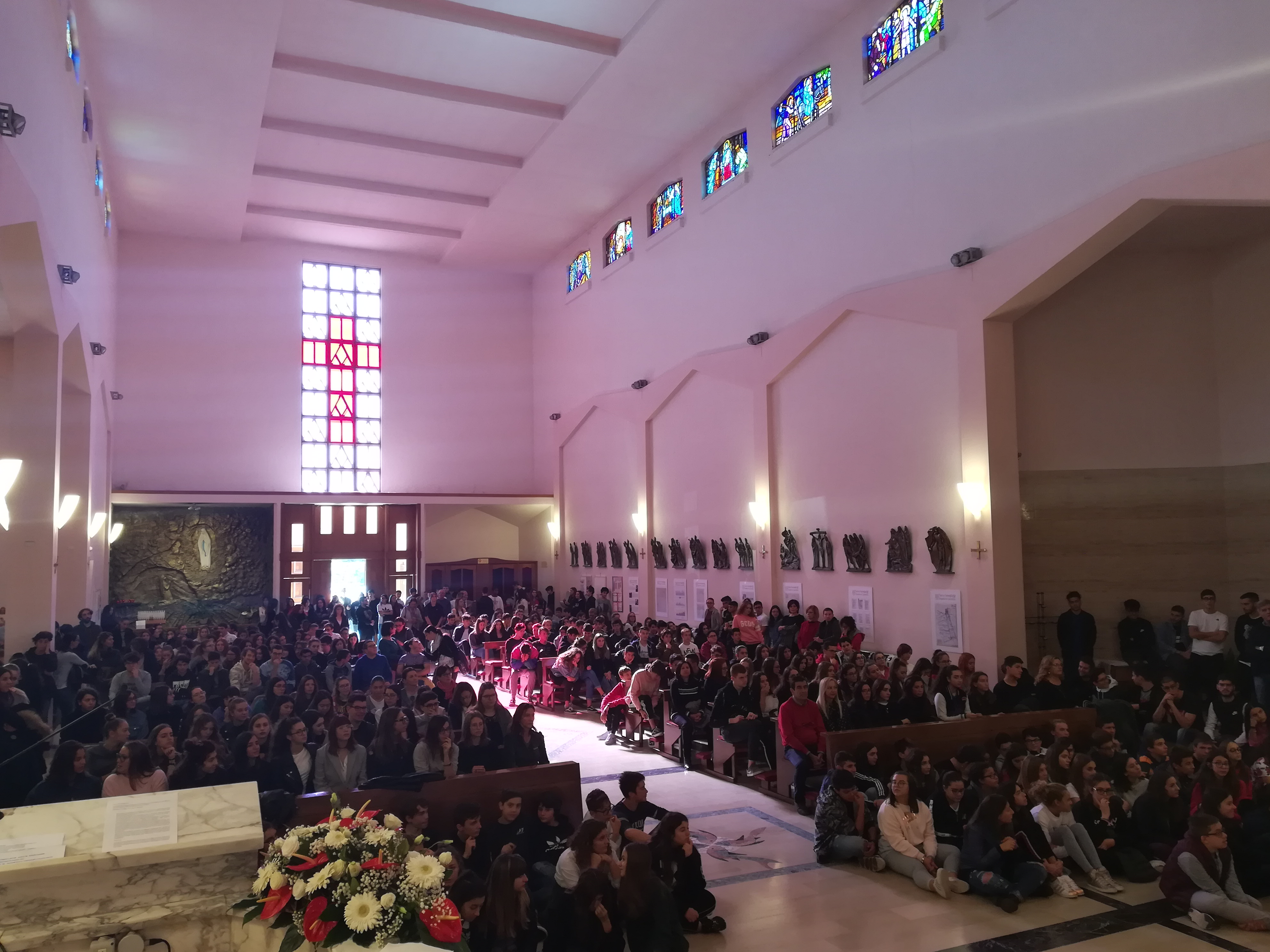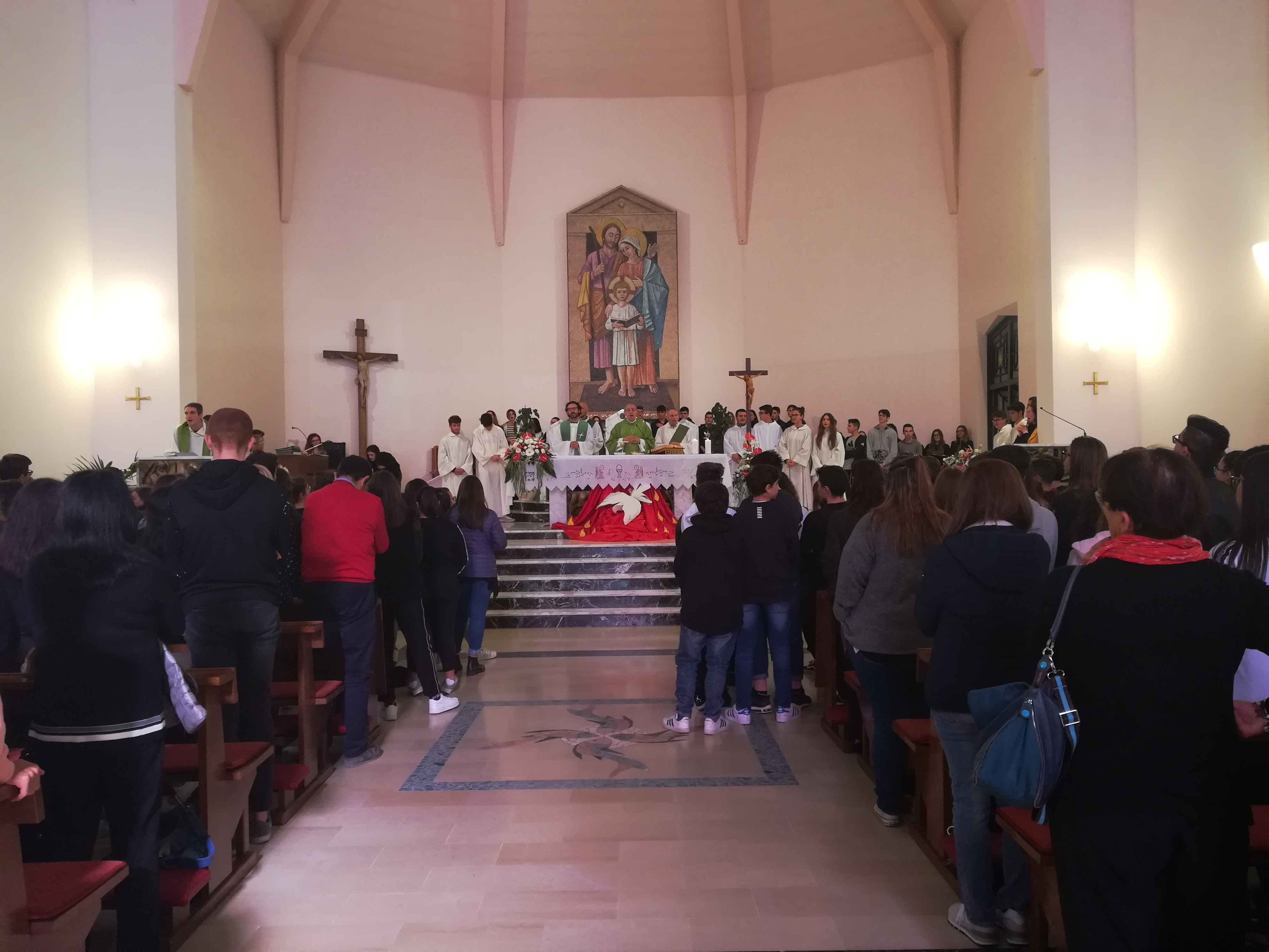 Molti i ragazzi che hanno svolto il servizio all’altare ed hanno animato la liturgia con canti di lodi accompagnati da giovani musicisti. Don Pierluigi Bartolomei, parroco della Chiesa Regina Pacis, insieme con don Roberto Traini, entrambi insegnanti di religione presso l’istituto, hanno costantemente guidato l’assemblea alla partecipazione ed all’ascolto della Parola.