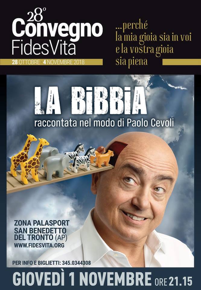In serata, alle ore 21.15, avrà luogo lo spettacolo teatrale La Bibbia, condotto da Paolo Cavoli, noto artista che ha partecipato a numerosi trasmissioni televisive. Cevoli porterà in scena alcuni volti della Bibbia, “il Libro dei Libri, da tutti conosciuto ma forse non da tutti letto”, e lo farà in maniera ironica, ma anche profonda: “A nominarla uno pensa che la Bibbia si occupi di storie antiche, ma in realtà è ancora attuale — spiega Cevoli —. Ognuno può ritrovare un po’ di sé in qualche pagina di quel libro perché vengono affrontati temi che oggi hanno una grande attualità: migrazioni di popoli, guerre e persecuzioni, il rapporto uomo-donna e quello tra padri e figli, e soprattutto la grande domanda sul male, che riecheggia in particolare nella vicenda di Giobbe: se Dio è buono, perché permette il male? Che senso dare al dolore e alla sofferenza degli innocenti?”. Interrogativi a cui Cevoli non dà risposte teologiche, ma lascia intravvedere la prospettiva con cui guardarli: quella dell’amicizia tra Dio e l’uomo, di un Amore che non lascia l’umanità in balia del suo limite. “Dio assume la condizione umana per innalzarla – afferma l’artista in un’intervista –. La Parola, quella con la maiuscola, non risuona nell’iperuranio, si è fatta carne e dà un significato nuovo a tutte le parole. Nella storia c’è il bene e c’è il male, ma dopo la Risurrezione di Gesù il male non è più l’ultima parola sull’uomo e sul mondo. L’ultima, definitiva parola, è una parola di bene”.