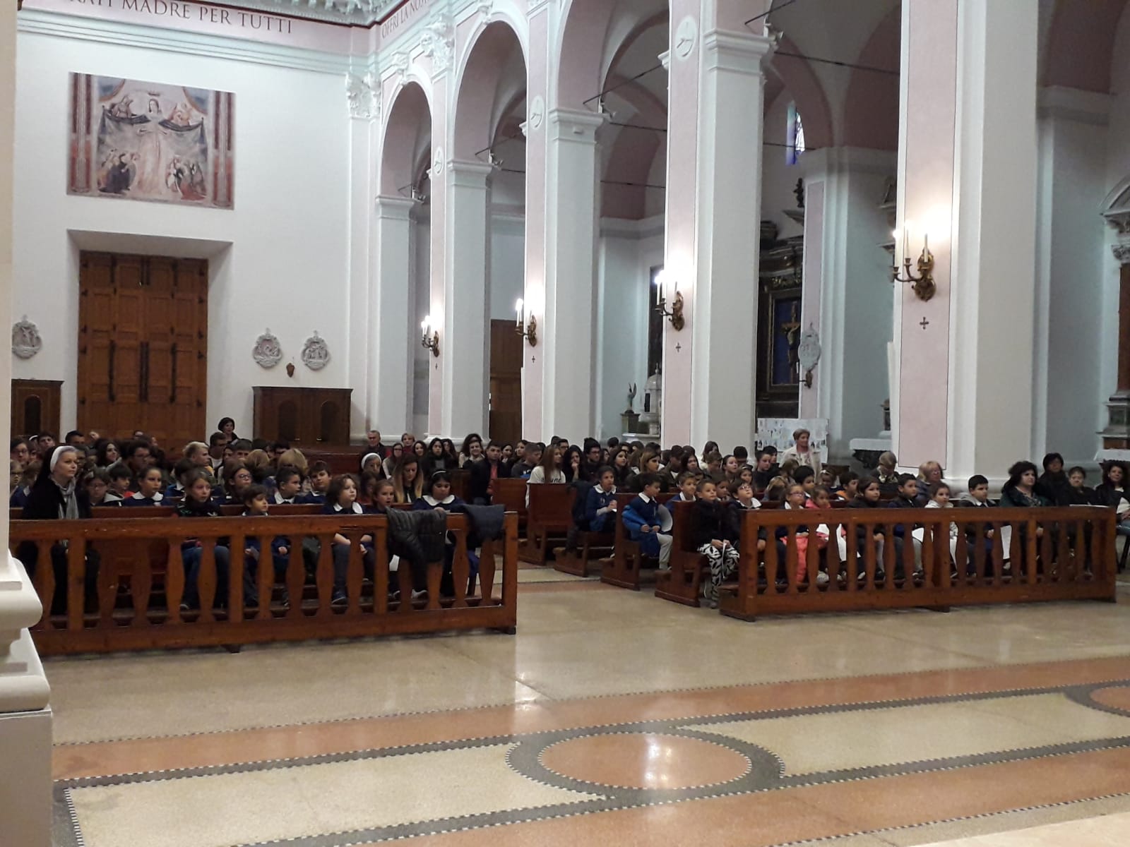 Mons. Bresciani: “Il Signore è contento di accogliervi per iniziare questo nuovo anno scolastico anche se so che è iniziato da un po’ di tempo! Un anno proficuo per voi ragazzi. Pensate a quei ragazzi che non possono andare a scuola, a quei ragazzi che non hanno nessuno. Come sono? Sfortunati. Manca loro un percorso molto importante per la loro vita. Voi invece lo avete.