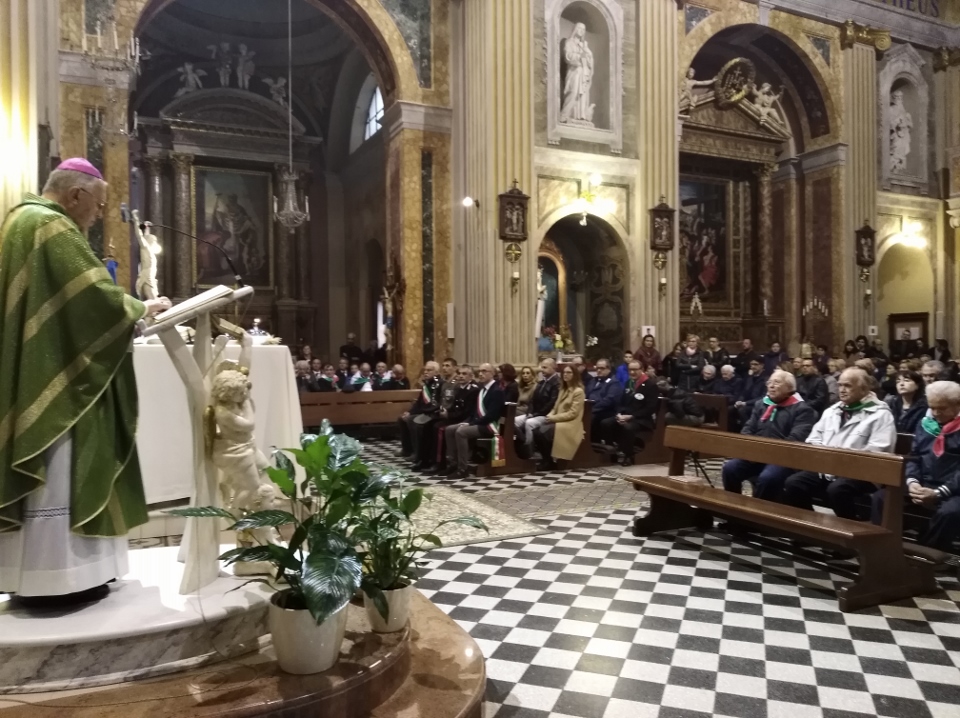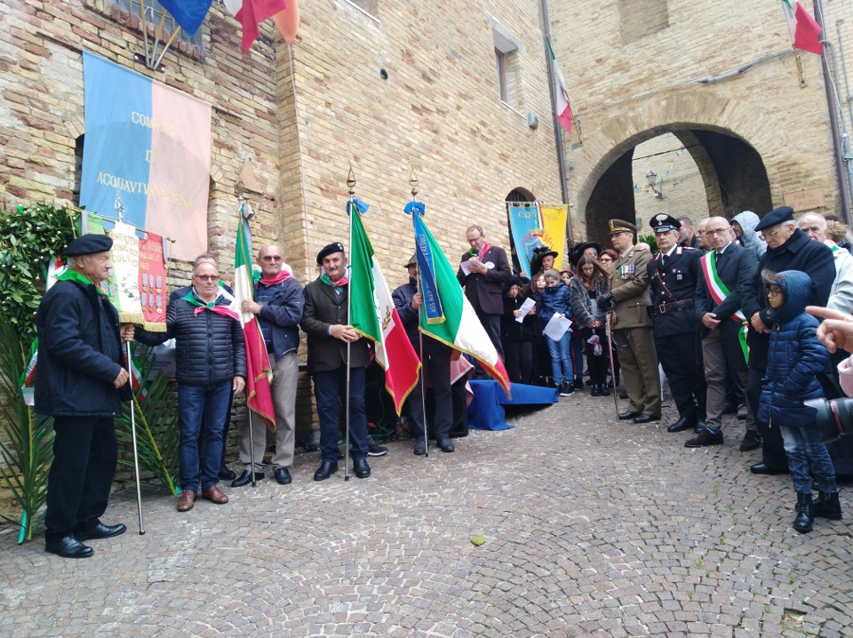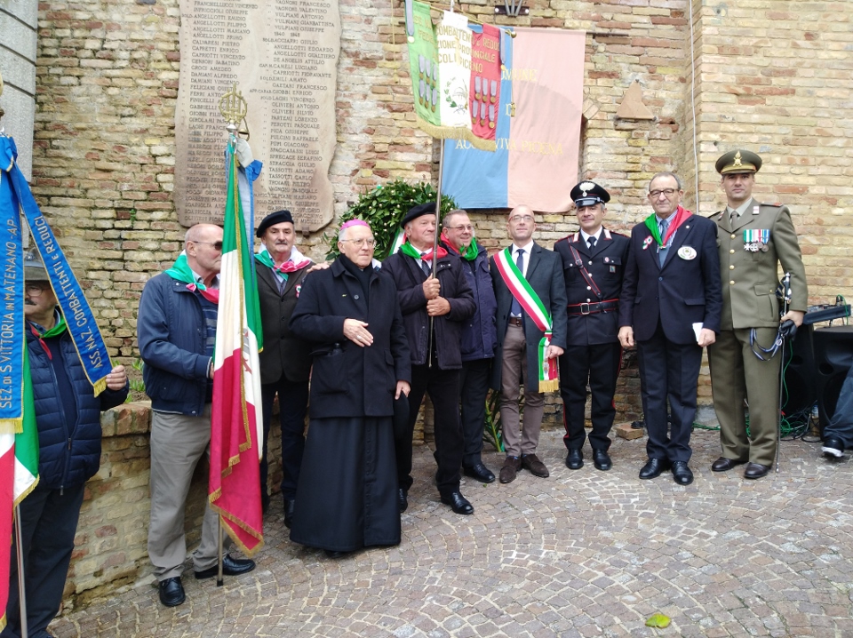 Il presidente cav. Grilli ha ringraziato tutti i partecipanti in particolar modo il sindaco di Acquaviva Rosetti e tutta l’amministrazione comunale, i rappresentanti delle forze armate e tutte le autorità politiche e religiose intervenute, un ringraziamento particolare a Sua Eccellenza Monsignor Gervasio Gestori e al presidente della BCC Banca del Piceno Mattioli. In programma della manifestazione ha visto in primo luogo un corteo partito da via Roma che si è diretto in chiesa dove alle ore 11:15 è iniziata la Celebrazione Eucaristica presieduta dal vescovo Gervasio, che nell’omelia h sottolineato: “Cento anni fa l’Italia festeggiava la fine della Prima Guerra Mondiale, festeggiava la pace…la pace. Noi tutti dobbiamo riflettere su questa parola, la pace è importante, la pace tra i popoli, le nazioni, ma anche tra di noi, con i nostri fratelli più vicini, con i bisognosi. La pace….pensate a quanti giovani strappati dalle loro terre per essere portati combattere, alcuni ci credevano, altri partirono per obbedienza e altri ancora avevano paura, paura della morte, paura di lasciare le loro terre per essere portati chissà dove, paure queste che accomunavano i giovani di tutte le nazioni coinvolte. Erano adolescenti, anche mio padre partì giovanissimo e ringraziando il Signore dopo due anni tornò a casa, ma non andò a tutti così, moltissimi giovani persero la vita combattendo per la Patria. La nostra libertà la dobbiamo pure a loro, i loro sacrifici non devono essere dimenticati, i loro nomi non devono essere dimenticati, parliamone ai bambini, tramandiamo a loro questi ideali e ricordiamogli i sacrifici che molti giovani fecero per l’Italia intera, da nord a sud senza distinzioni. Non c’è bisogno del patriottismo estremo, amiamo la nostra Terra perché esso è un dono di Dio.