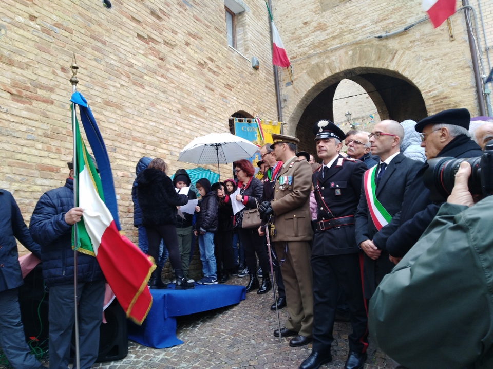 ACQUAVIVA PICENA – Il 4 novembre di cento anni fa, finiva la Prima Guerra Mondiale. L’Italia felice della notizia si ritrovò comunque a dover constatare i danni causati al Paese. Il centenario della fine della Grande Guerra è stato celebrato anche ad Acquaviva Picena, l’associazione combattentistica A.N.C.R. sezione di Acquaviva guidata dal presidente cav. Duilio Grilli ha organizzato tutto l’evento al quale ha partecipato oltre alla popolazione anche i bambini della scuola elementare che hanno ricordato i caduti in guerra di Acquaviva. Grande la partecipazione nonostante il cattivo tempo, nebbia e freddo non hanno impedito che tutto si svolgesse l’evento.