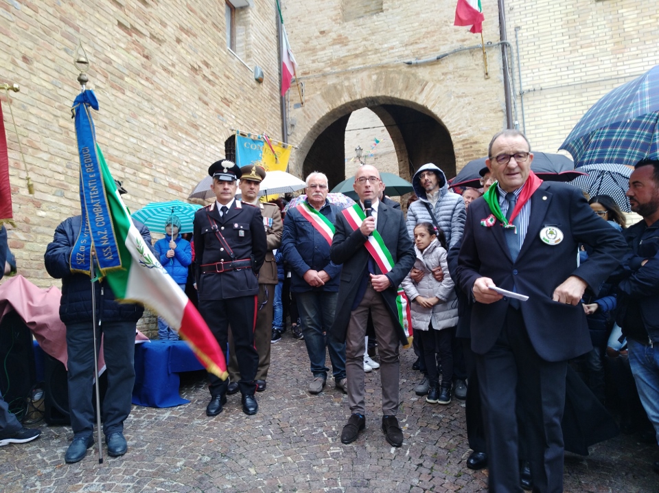 Il Vangelo di oggi poi ci ricorda che adoriamo tante cose materiali, tante cose che appartengono a questo mondo, quando invece l’unico da adorare è solo Dio. La salute, la famiglia sono importanti, ma non vanno adorate, solo il Signore va adorato. Gesù ci ricorda poi un’altra cosa, che dobbiamo imparare ad ascoltare, abbiamo due orecchie e una bocca perché dobbiamo ascoltare il doppio di quello che diciamo e invece succede sempre il contrario. Stiamo lontano dall’idolatria, la serenità e il bene vengono solo dal Signore”. Dopo la santa Messa è stata deposta una corona in onore dei caduti e i bambini della scuola di Acquaviva dopo aver letto i nomi, hanno riportato alcune loro riflessioni. Il sindaco Rosetti ha detto: “ Tanti giovani hanno combattuto per la Patria, si sono ritrovati tutti insieme per un unico fine, accettato o meno, hanno formato un unico popolo e forse in quel momento non tutti se ne saranno accorti, ma da ogni parte d’Italia i giovani hanno formato un unico esercito, l’esercito italiano, c’è stata coesione. Io voglio ricordare ai più giovani il sacrificio al quale tanti adolescenti sono stati chiamati e che hanno portato all’Unità Nazionale. La Costituzione Italiana, cari ragazzi, ripudia la guerra come strumento di risoluzione delle controversie; privilegia la pace, il rispetto dei diritti umani e delle minoranze. Associandomi alle parole di Sua Eccellenza Monsignor Gervasio, ricordatevi che la pace è la prima via da perseguire”. Immancabile il vento come tutti gli anni, sia che spenda il sole sia che cada la pioggia, una leggera brezza si alza sempre durante la deposizione della corona d’allora e mentre vengono letti i nomi dei soldati acquavivani caduti al fronte, come a voler sottolineare il commovente momento.