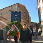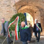 Si sono dati appuntamento davanti al Palazzo Comunale gli organizzatori che, in fare solenne con la partecipazione del Sindaco accompagnato dalla bandiera e dallo stemma di Montelparo, si sono diretti, con la corona d’alloro a fare da guida, verso il monumento ai caduti di tutte le guerre.