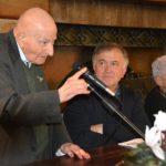 Il “Maestro” aveva al suo fianco colei che aveva curato il libro, Grazia Vergari, e il presentatore/moderatore Giuseppe Mariucci, presidente dell’Associazione Culturale “Il Murello” di Montelparo.