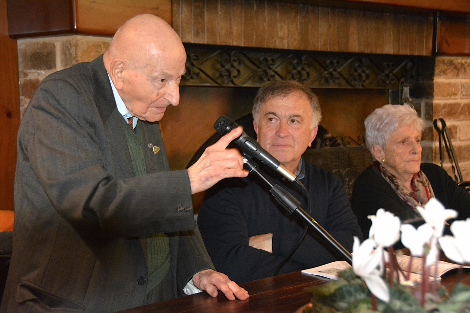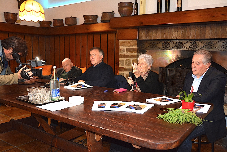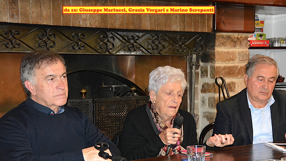 Il “Maestro” aveva al suo fianco colei che aveva curato il libro, Grazia Vergari, e il presentatore/moderatore Giuseppe Mariucci, presidente dell’Associazione Culturale “Il Murello” di Montelparo.