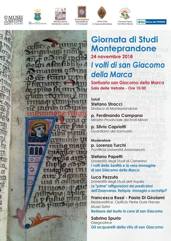 Come ogni anno, nei giorni che precedono la festa del Santo, s’intende offrire alla comunità dei cittadini (non solo monteprandonesi), studiosi e specialisti di francescanesimo un momento di riflessione e incontro comune per continuare a conoscere (e far conoscere) la figura di Giacomo della Marca.
