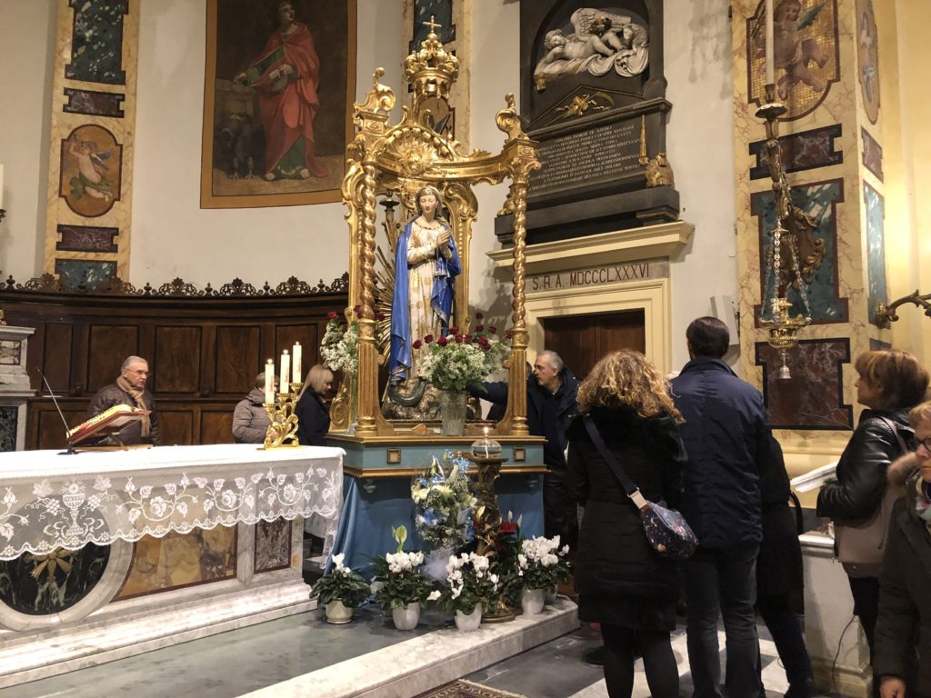 SAN BENEDETTO DEL TRONTO – Stamattina il Vescovo Carlo ha presieduto la Santa Messa in occasione della Novena all’Immacolata Concezione. La celebrazione eucaristica è iniziata alle ore 6.00 e ha visto una grande e sentita partecipazione di fedeli, come sempre accade in questo periodo dell’anno. La Novena infatti fa parte del voto cittadino che ogni anno si rinnova per ringraziare la Vergine dello scampato pericolo del colera.