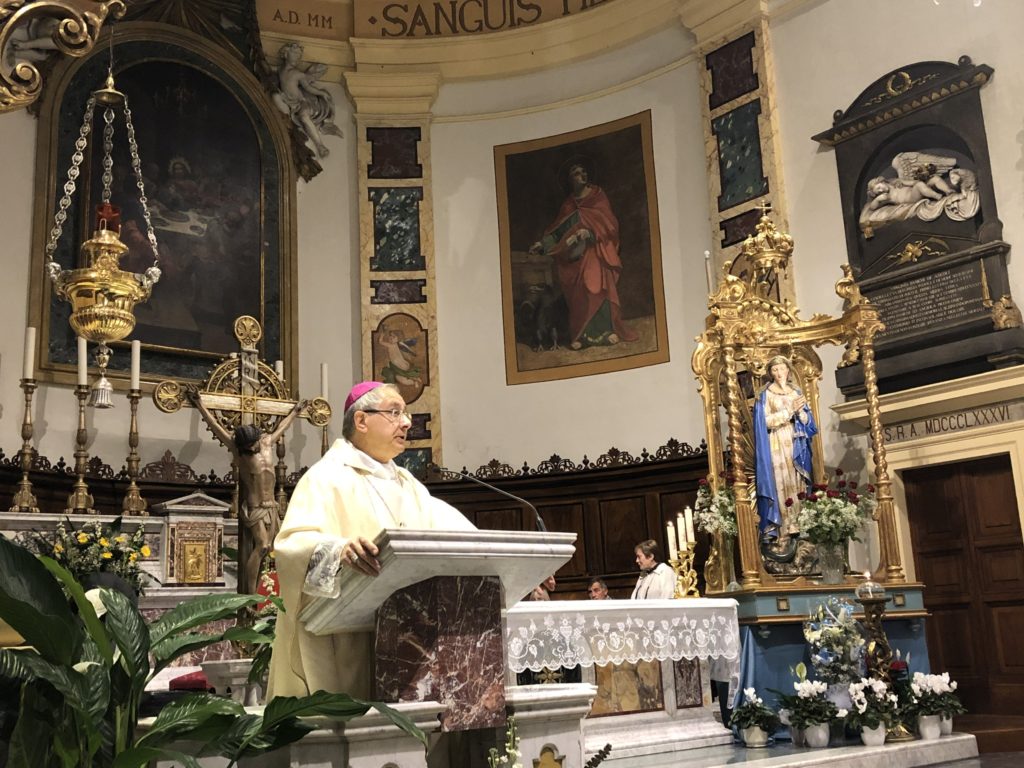 Durante l’omelia il Vescovo ha invitato i fedeli a prendere Maria come esempio e a guardarla come colei che ci vuole accompagnare all’incontro con Dio. Maria ha vissuto la sua vita in modo immacolato, camminando sempre decisamente verso il Signore, sin da quando è stata presentata al Tempio. Come Maria, anche il nostro cammino verso Dio deve avere inizio da bambini. È sintomo di una tiepidezza della fede quando i genitori cristiani dicono, a riguardo della fede dei propri figli, che ci penseranno quando saranno grandi. Ci preoccupiamo giustamente di tutte le cose che crediamo importanti per loro, come la salute, l’istruzione, lo sport, ma a volte sembra che reputiamo secondario educarli nella fede.