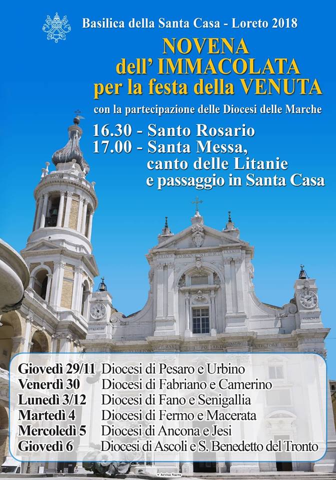 DIOCESI – I vescovi delle Marche, in occasione della Novena dell’Immacolata che a Loreto prosegue con la “Festa della Venuta” e la celebrazione della beata Vergine di Loreto il 10 Dicembre, hanno deciso di invitare le proprie diocesi ad un pellegrinaggio alla Santa Casa, per evidenziare come questo luogo sia un riferimento per l’intera comunità regionale.