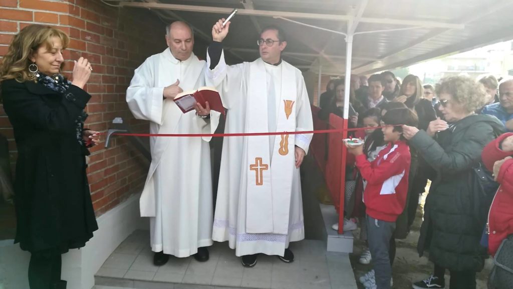 SAN BENEDETTO DEL TRONTO – Con la solenne benedizione ed il classico taglio di nastro, don Francesco Ciabattoni ha inaugurato domenica 2 dicembre la nuova sede della “Caritas parrocchiale”, nei locali antistanti il campetto. Ora può contare su un magazzino di più ampia metratura per il deposito e la distribuzione dei vestiti e degli alimenti, l’accoglienza delle famiglie.