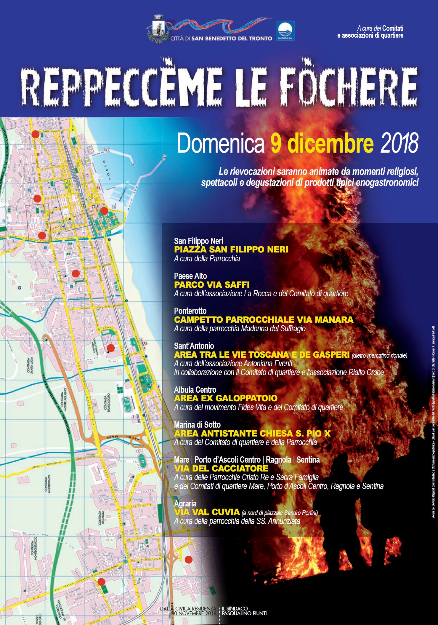 L’iniziativa è organizzata in collaborazione con i Comitati di quartiere, le Parrocchie e alcune associazioni cittadine che hanno comunicato l’accensione di otto falò.