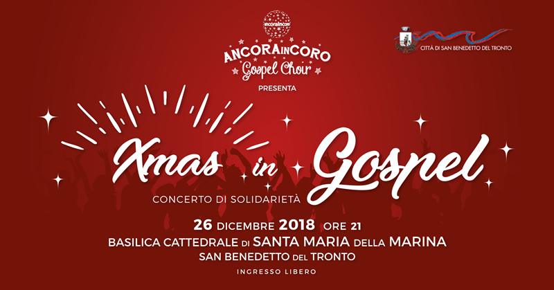 SAN BENEDETTO DEL TRONTO – Reduce dal grande successo ottenuto a Milano nella Basilica di Santa Maria di Lourdes, ANCORAinCORO Gospel Choir, il prossimo 26 dicembre, alle ore 21, tornerà ad animare le festività natalizie sambenedettesi con “Xmas in Gospel”, concerto Gospel di solidarietà che, per la prima volta, si terrà nella Basilica Cattedrale di Santa Maria della Marina, fresca di restauro dopo i danni subiti a causa del terremoto.