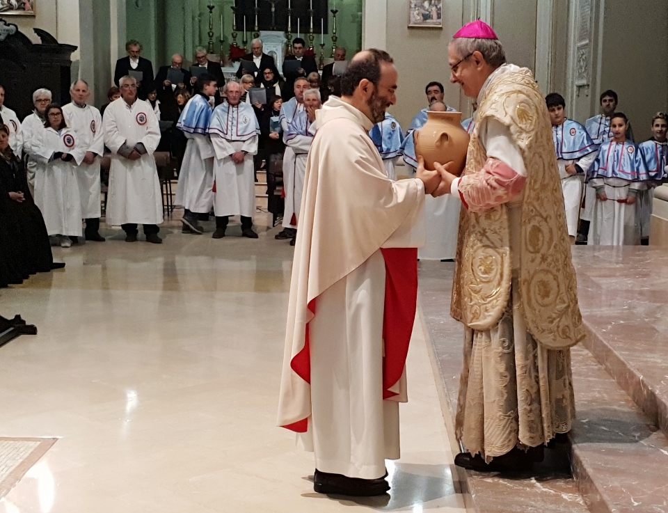 Durante l’offertorio Don Gian Luca Pelliccioni, parroco della Chiesa di San Niccolò di Monteprandone e vicario della vicaria San Giacomo della Marca, ha donato, a nome della zona pastorale, l’olio per la lampada votiva in onore della Madonna di Loreto anche detta Madonna di San Giovanni.