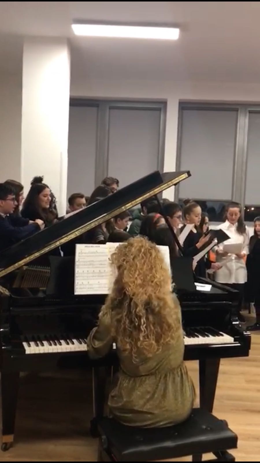 Per concludere la serata le tre classi di pianoforte hanno proposto tre brani cantati della tradizione natalizia, coinvolgendo allegramente il pubblico in sala.